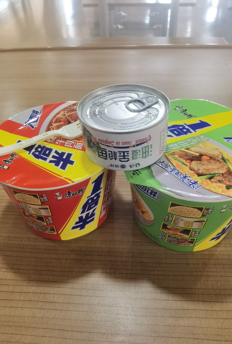 躺床上半醒半睡到4点,到超市买东西。进了店才发现只能用现金!本以为吃东西无望,猛地想起包里一个小钱包里有钱!一翻,整一百!买了方便面和油浸金枪鱼,找回的钱有四个钢蹦儿,实在不想要,售货员说可以拿两个卤蛋。回到餐厅泡面,不少散座的人在里面休息,吃东西,打牌。
