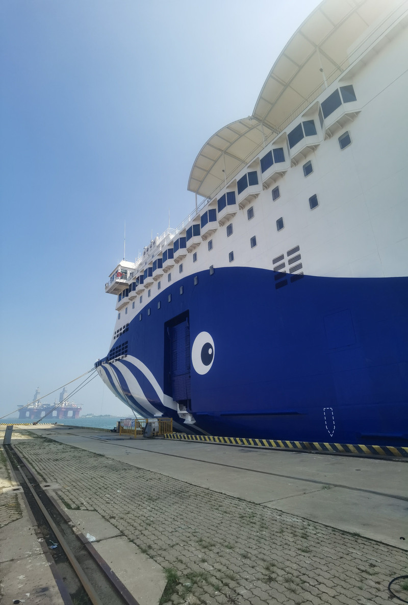 从这个服务区开始,换我开。 11.04到达福山下高速,高速费92元。11:40到达烟台客运站,老公开着车接受安检,上船。我走到客运站,在候船厅等候,窗外就是我们要乘的游轮“渤海钻珠”号。