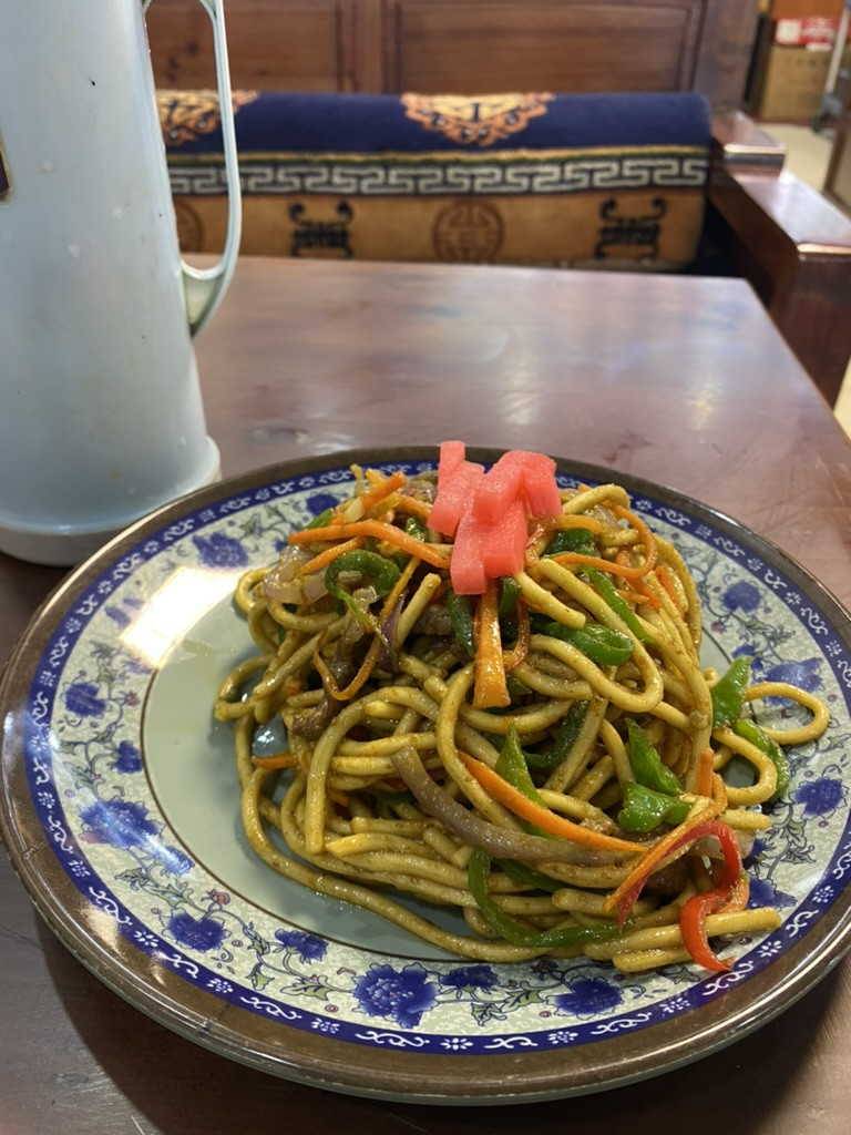 村里好像只看到一个茶馆,点了奶茶,加一份土豆丝盖饭。