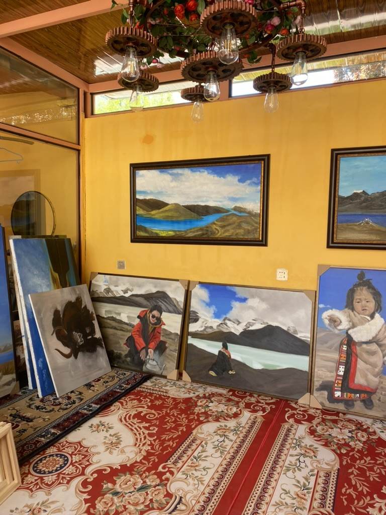 最后一张图里的姐姐在写生,画雪山水彩画,因为英姐在客栈有一个自己的画室,我还专门领英姐过去和这位姐姐认识了一下,因为她们明显是有共同兴趣爱好的人。