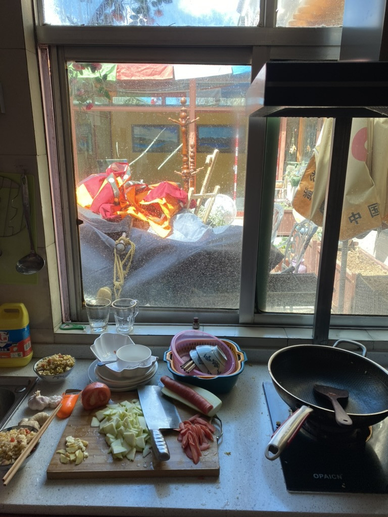 英姐在炒饭给我们吃,对了,与我们一同去看桃花的还有一位大专刚毕业的小姑娘,我们三人一起吃了炒饭。