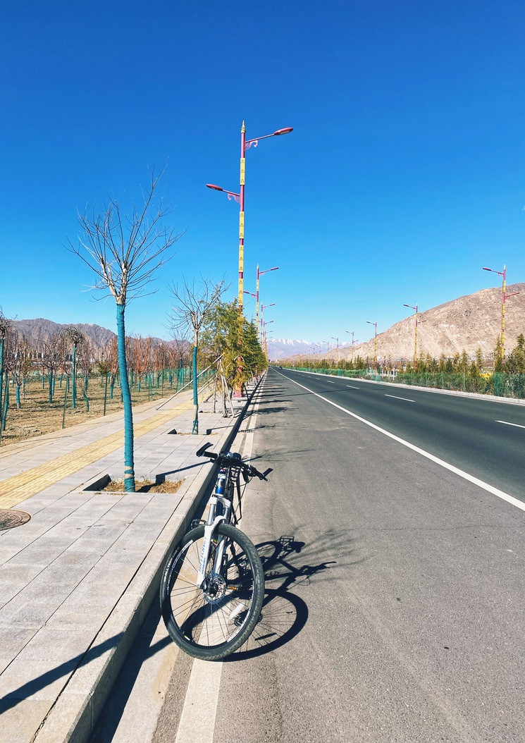 我订是的小房间,由于淡季,有空房,英姐看我要上班,就调了一间大房给我。早上太阳刚好晒到阳台,懒洋洋的边晒太阳边敲代码也别样的一种享受。 4月7号,星期五,在拉萨的最后一天,因为公司调整为4天工作制,所以今天不上班。地图上找了一家美利达自行车店,180一天租了一辆山地车,押金500,走了202省道接561国道,一路沿着拉萨河,望着雪山,最终抵达克日村。