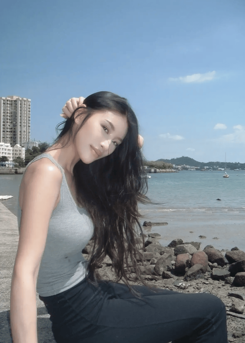 郭珮文在海边吹风好惬意。