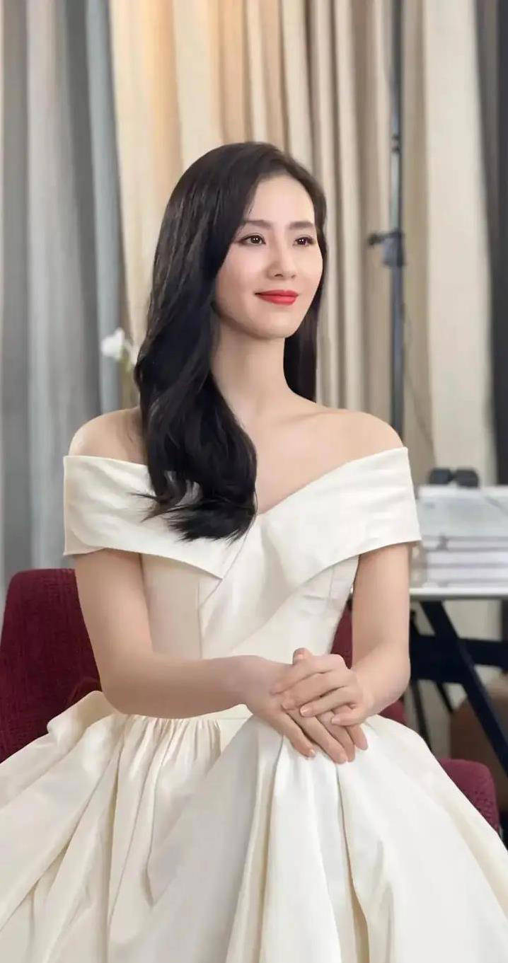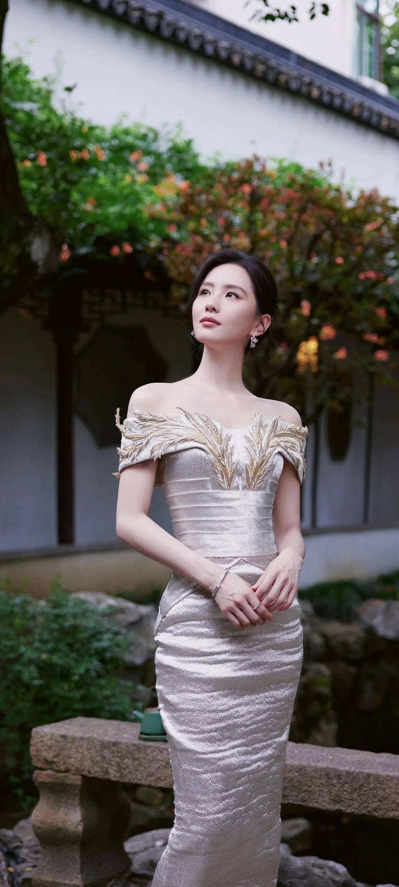 这条礼服在剪裁上的用心,让刘诗诗的身形优势被最大化展现。抹肩设计露出精致的肩颈线条,带来一种清冷又优雅的美感。相比于深V、抹胸的性感,这种露肩的留白更含蓄,也更适合营造高贵气质。