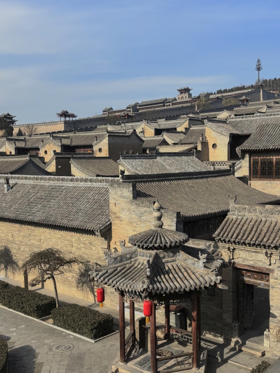感受:踩着城墙的青砖步道前行,手摸斑驳的砖石,仿佛能触摸到明清时期的烟火。登高远眺,整座古城棋盘式布局清晰可见,四合院鳞次栉比,屋顶的兽吻整齐排列,没有现代建筑的干扰,完全是穿越回古代的既视感,风一吹还能听到远处的叫卖声,烟火气十足。 独特点:全球现存规模最大、保存最完整的明清古城墙,军事防御与居住功能完美融合,是研究中国古代城市建筑的活化石,独一无二。 2. 乔家大院“红灯笼映四合院” 晋商文化的巅峰载体,以“皇家看故宫,民宅看乔家”闻名,由6个大院、19个小院组成的城堡式建筑群,红墙灰瓦搭配高悬的红灯笼,尽显晋商豪宅的气派与精致。 ✅交通:平遥古城坐旅游专线车(15元/人),40分钟直达;✅门票:110元;✅时间:旺季(4-10月)8:00-18:30,淡季(11-3月)8:30-17:30,建议玩3小时(下午3点后去,夕阳照在红灯笼上氛围感拉满)