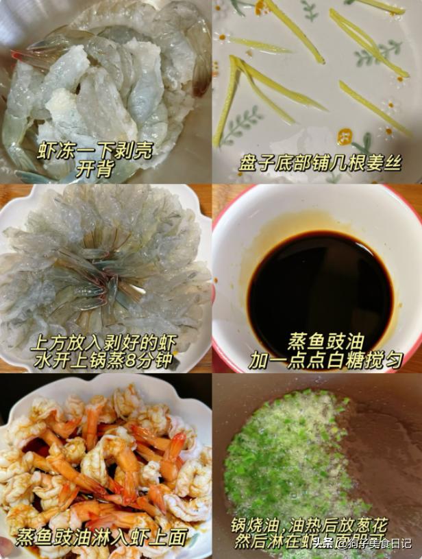 清蒸虾仁 材料:适量虾仁,生姜丝,蒸鱼豉油,适量白糖,葱花,适量热油。