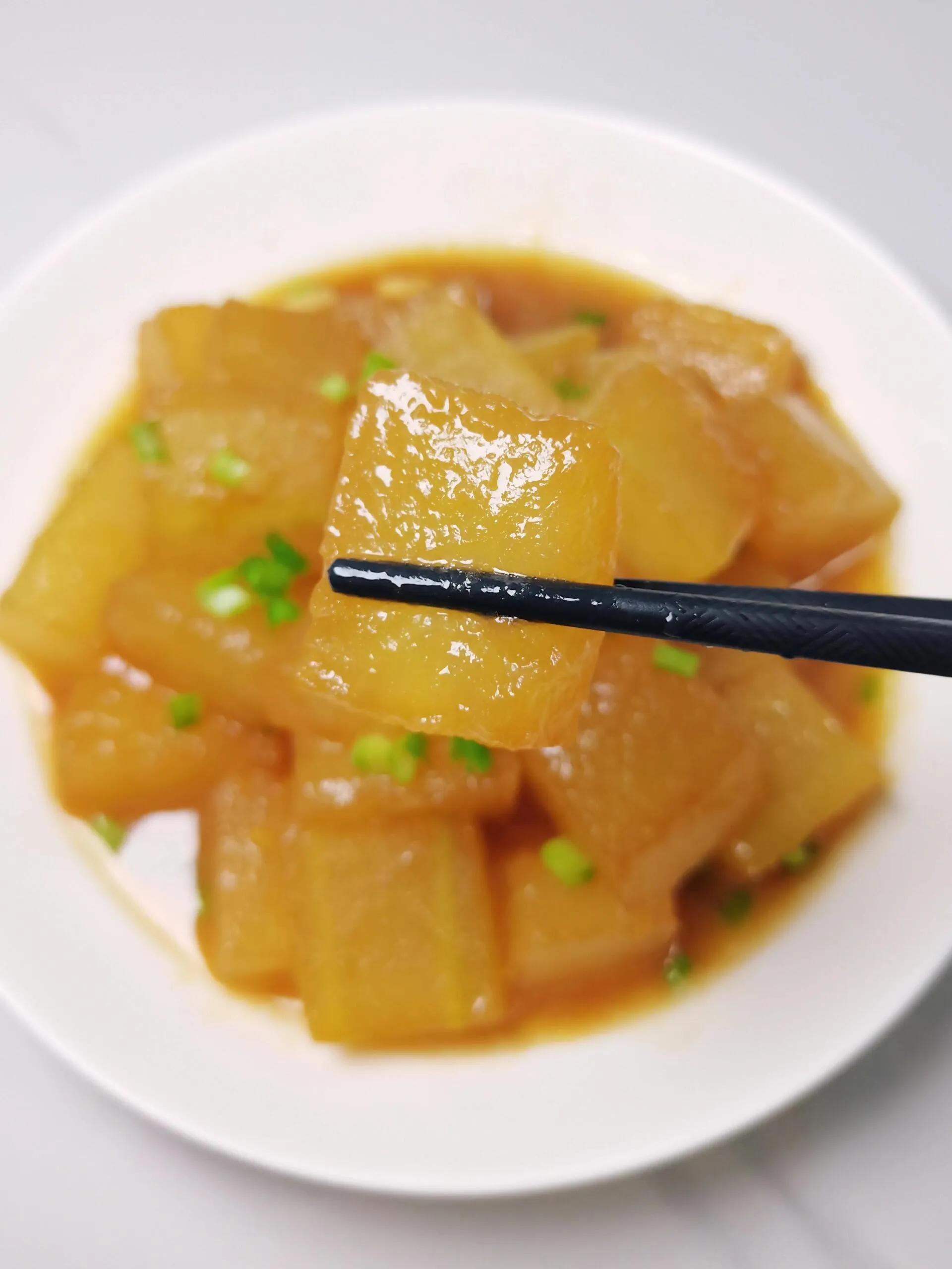 说说最让人惊喜的红烧冬瓜: 冬瓜本身低糖高纤维,热量比黄瓜还低,炖软了吸满酱汁,比肉还香!做法超简单:冬瓜去皮切厚块,热油炒香蒜末,加1勺生抽、半勺蚝油、少许清水,放入冬瓜块焖煮5分钟,直到冬瓜变软透亮,最后勾点薄芡收个汁,酱香浓郁,入口软嫩,吃着完全不像“控糖菜”,连孩子都抢着吃。
