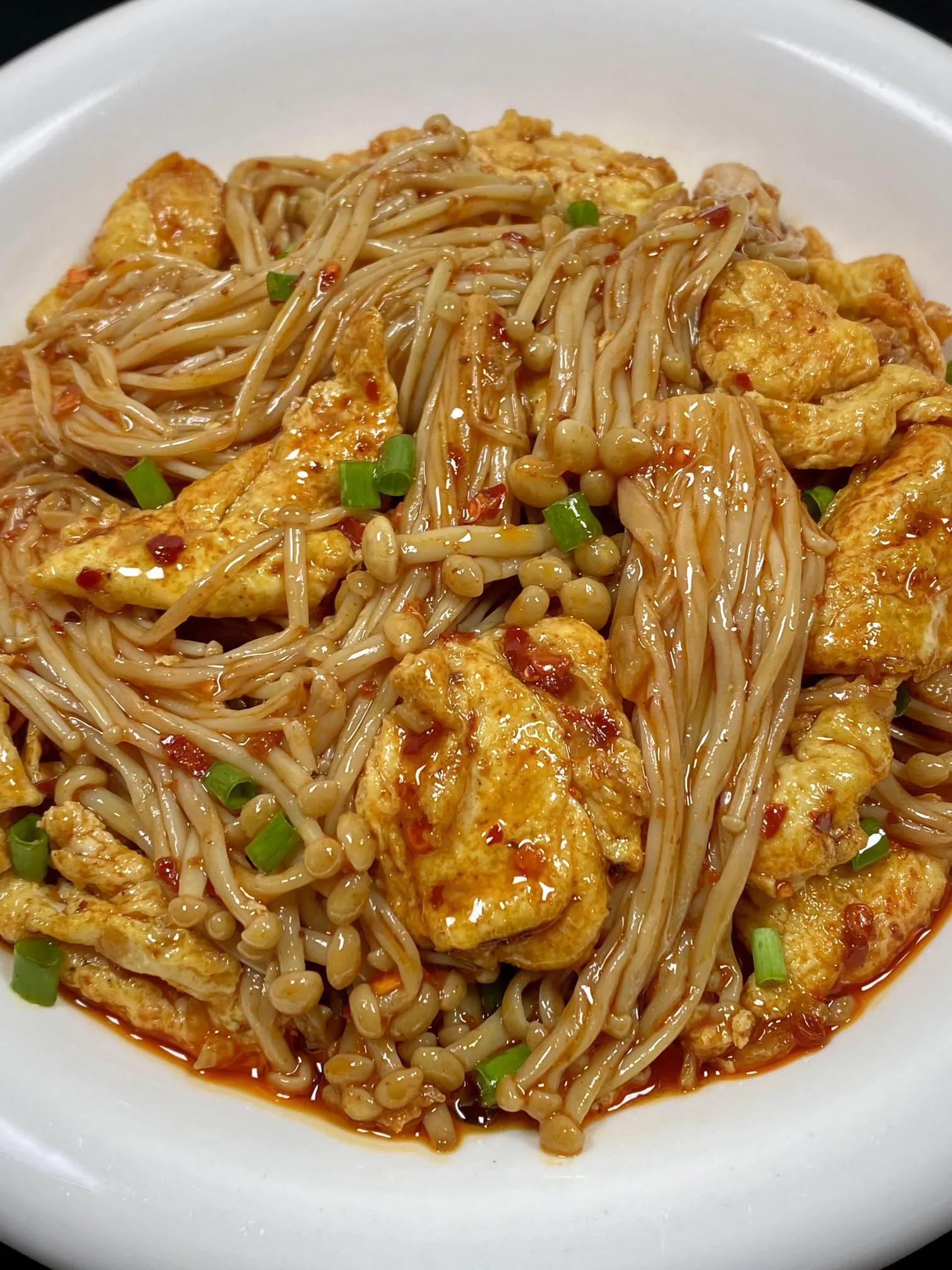 金针菇炒鸡蛋, 金针菇吸油又饱腹,和鸡蛋一起炒,鲜香味足,简单又快手。