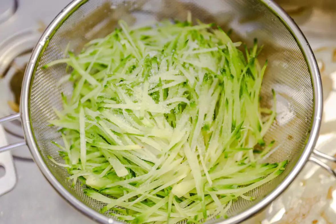 3.萝卜丝冲凉水:切好的萝卜丝,用凉水冲洗几遍;