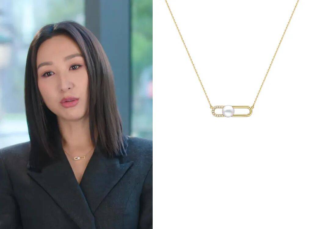 她常戴的还有一款马蹄形的项链,貌似是中古款,里面有一颗圆润珍珠,很衬她的气质。