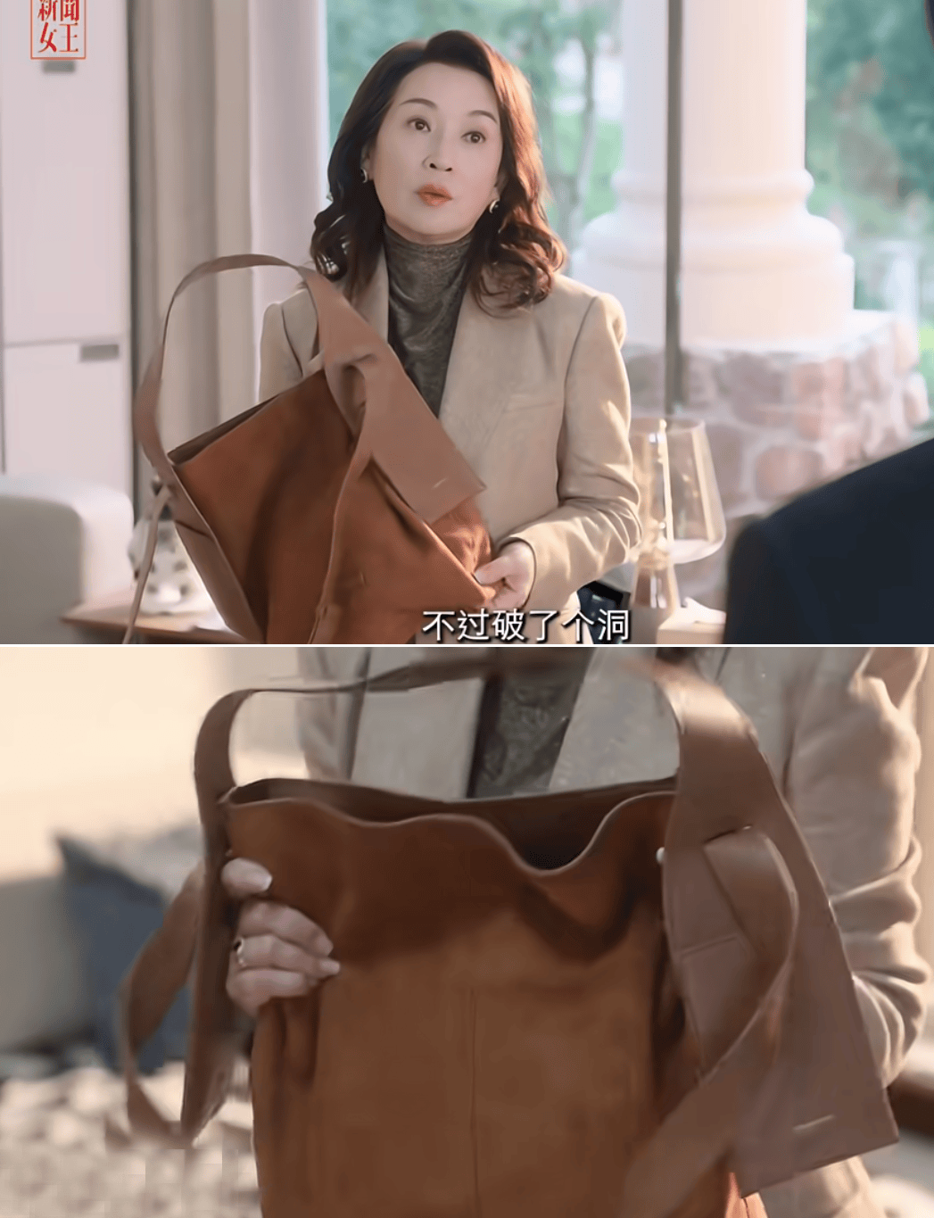 虽说跳脱出了电视台的条条框框,但与此同时,她的底色依然是那个雷厉风行、眼神杀人的“新闻女王”,还将大女主造型延续到了这一部。