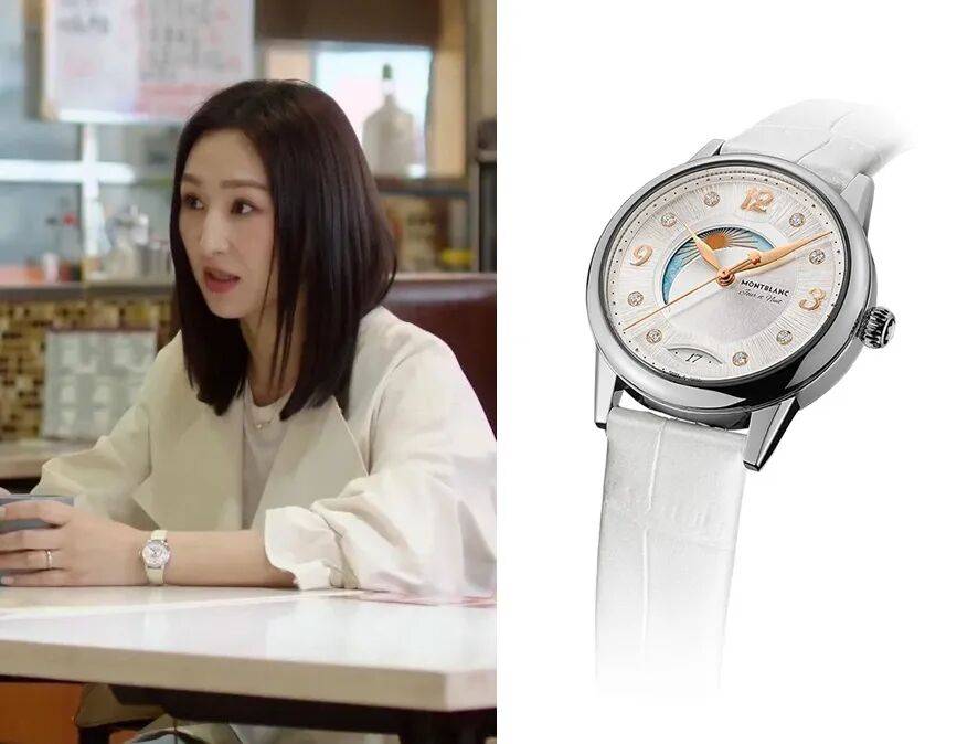 许诗晴在剧中为数不多的腕表,其中一块是来自万宝龙的宝曦系列昼夜显示手。这枚腕表选的很妙:“书写工具”起家的万宝龙很符合她跳槽后文职身份的设定,“昼夜显示”功能也暗喻了她“白天是听话的下属,晚上是运帷幄的操盘手”~