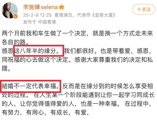 毕竟,俩人参加节目的时候,就是「分手」的状态,今年2月份,女方官宣的。 当时官宣文案信息量也是蛮多的:俩人谈了8年,但没结婚👇