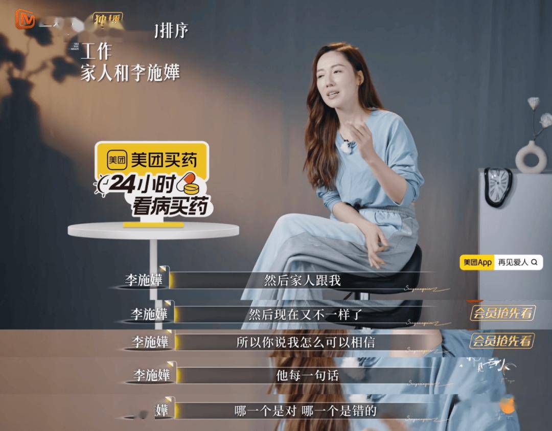 于是,李施嬅在这段感情中也变成了「逐利」的一方,她的点在「弥补情感缺失的那一块」。 仅仅这一点,就足够让她屏蔽掉车身上那些令人发指的缺点。 但李施嬅拧巴的地方在,她很清醒这段关系不适合自己, 节目中车崇健的人生排序和之前不同,李施嬅直接戳穿,他有表演的成分👇