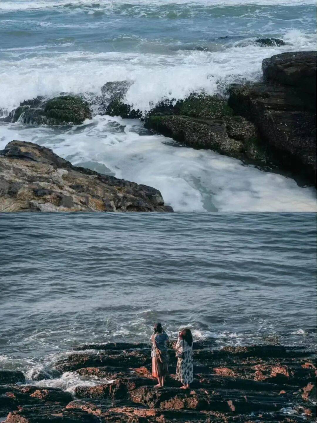 这里也有很多散落的礁石,海水十分干净,一浪又一浪地拍打在礁石上,吹着习习海风,听着潮起潮落,仿佛世界都安静了下来。
