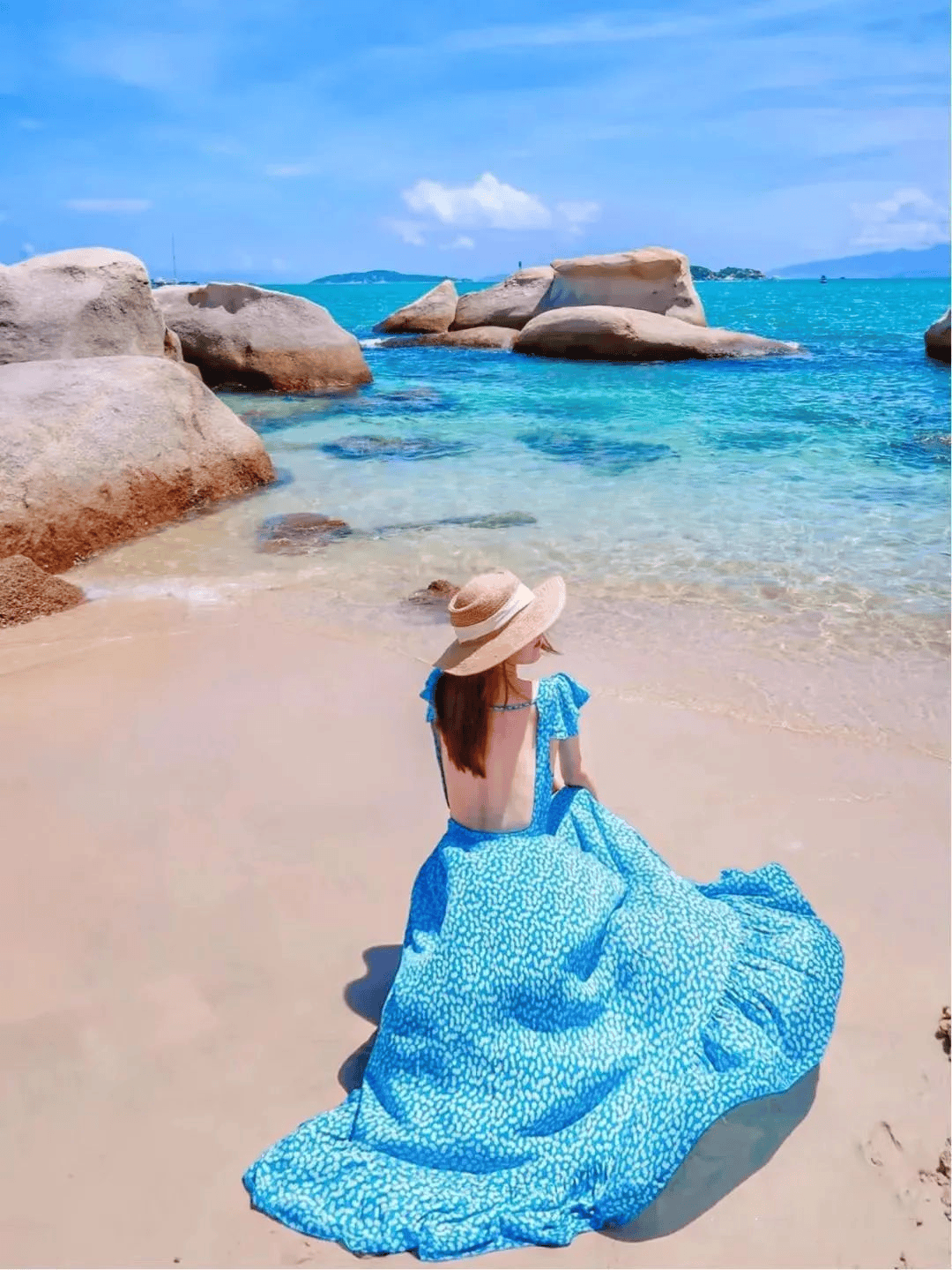沙滩也实在是纯净细软,赤脚踩在沙粒上,追着海风一路奔跑,或是晃着秋千,看浪涛静静翻涌,躺倒在遮阳伞下,远眺碧海蓝天……把度假的氛围感一下子拉满。