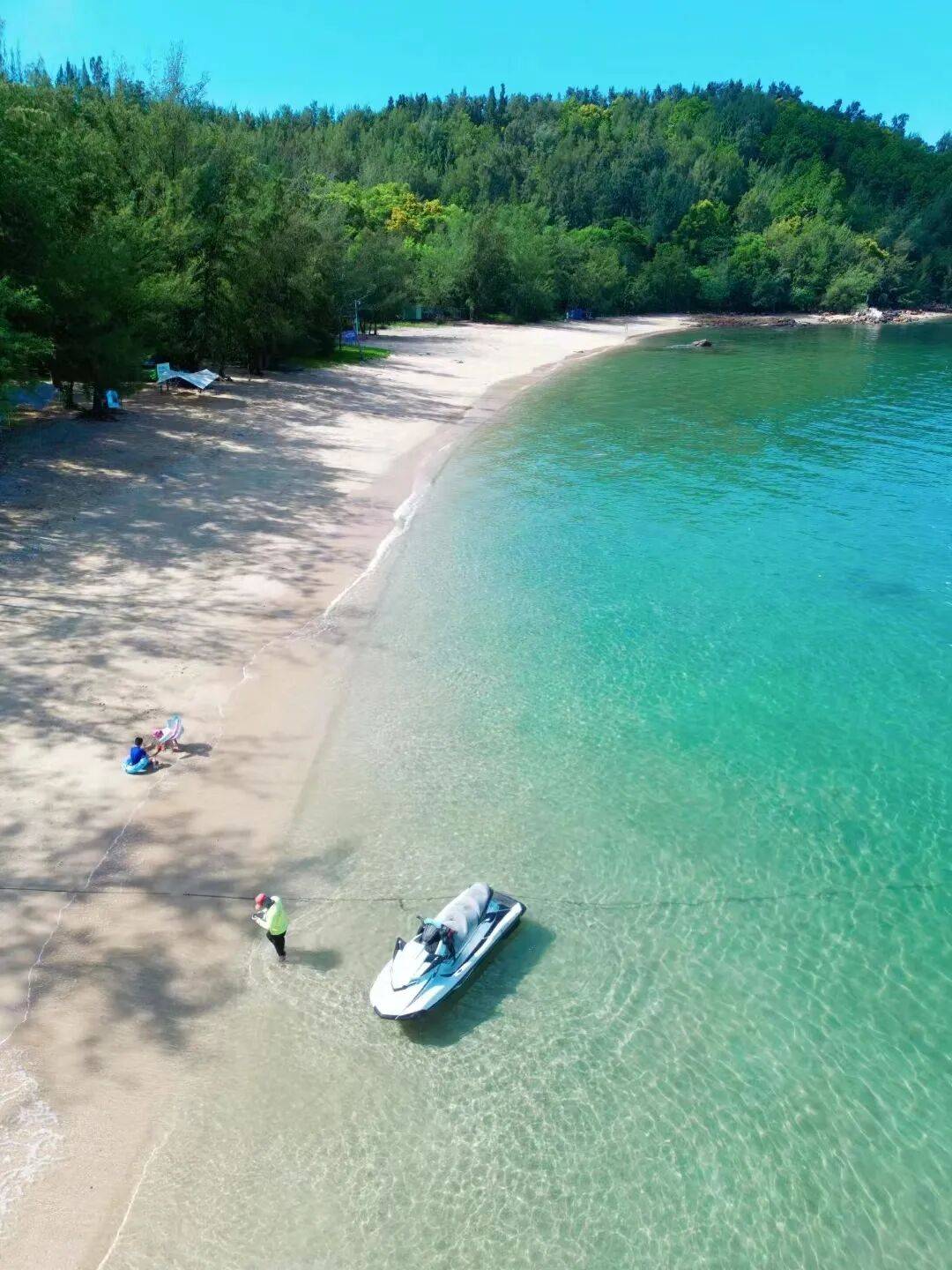 天气晴好的时候,就支个天幕来野餐,沙滩边有超多的大树,洒落片片阴翳,丝毫不会觉得燥热,还能骑着摩托艇,或是划着桨板,去海面上自在撒欢。