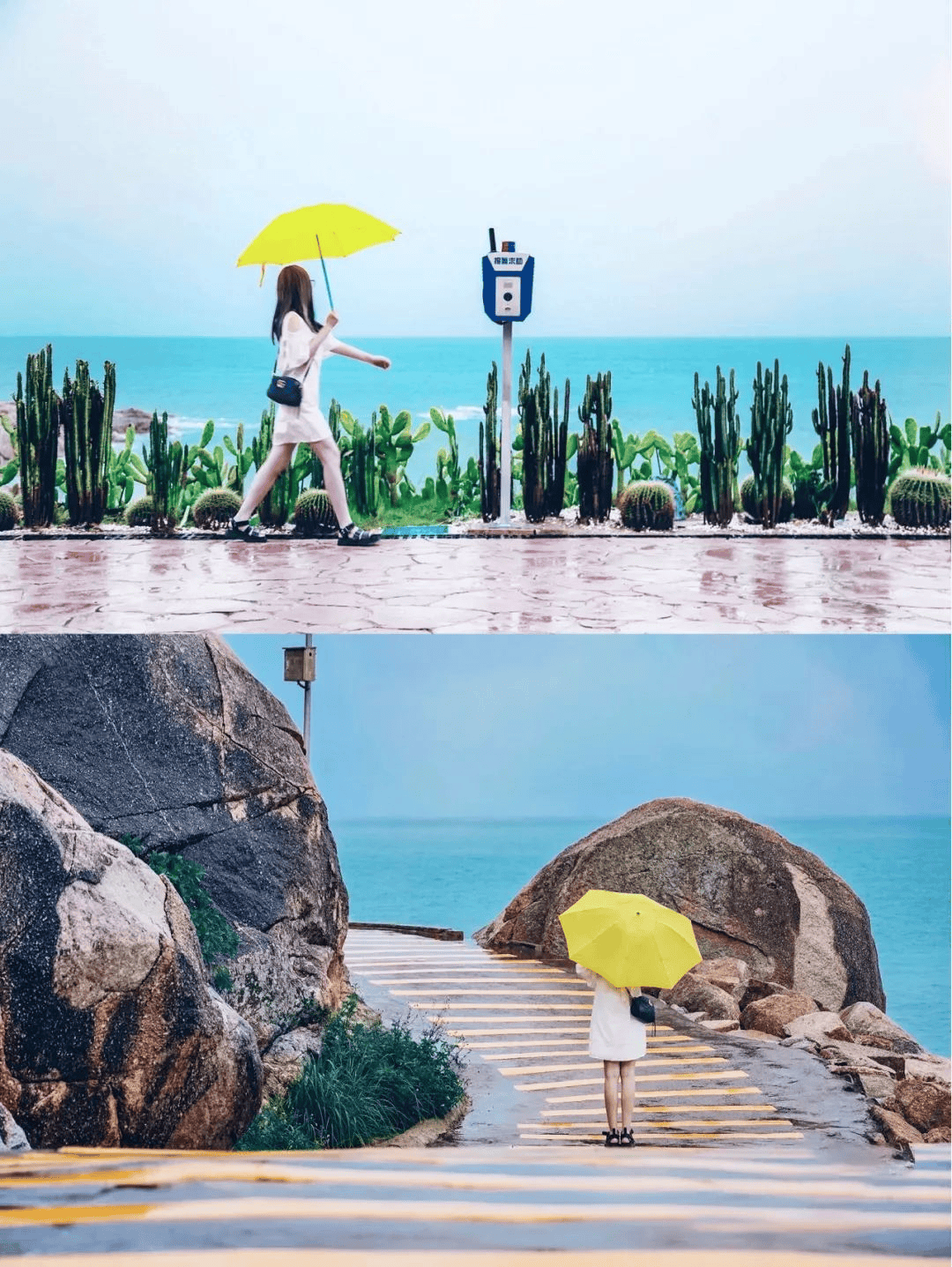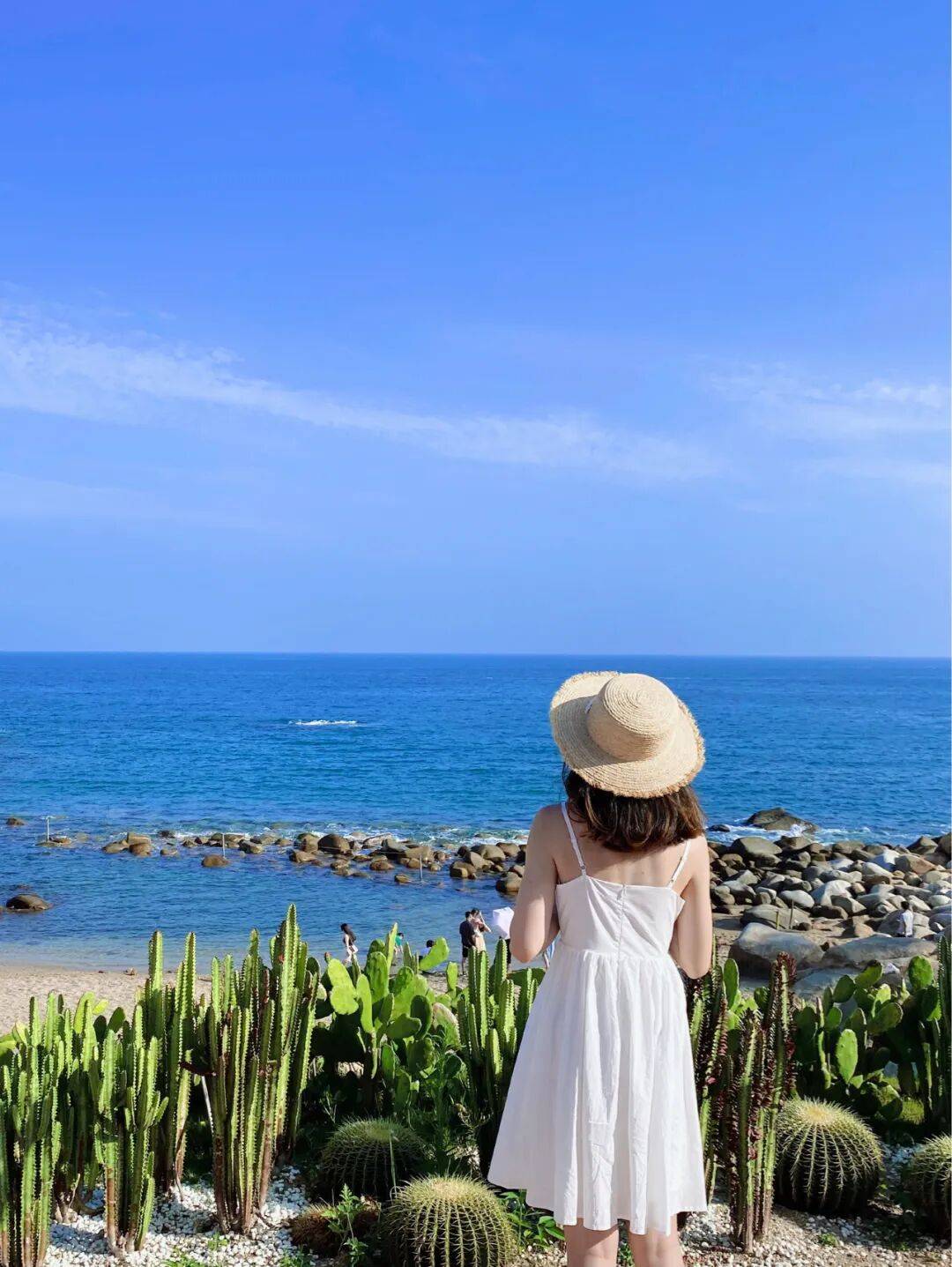 你可以沿着长长的栈道,一路走向至海边,葱茏的仙人掌在沙滩上肆意生长,远处便是一望无垠的海蓝蓝,偶有几只海鸥低空掠过……像是童话故事里的场景。