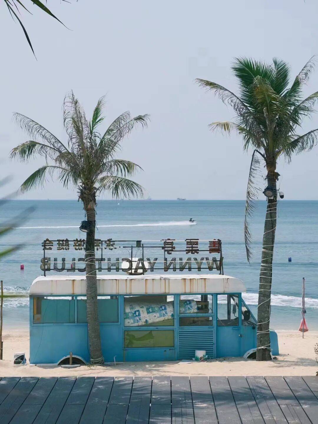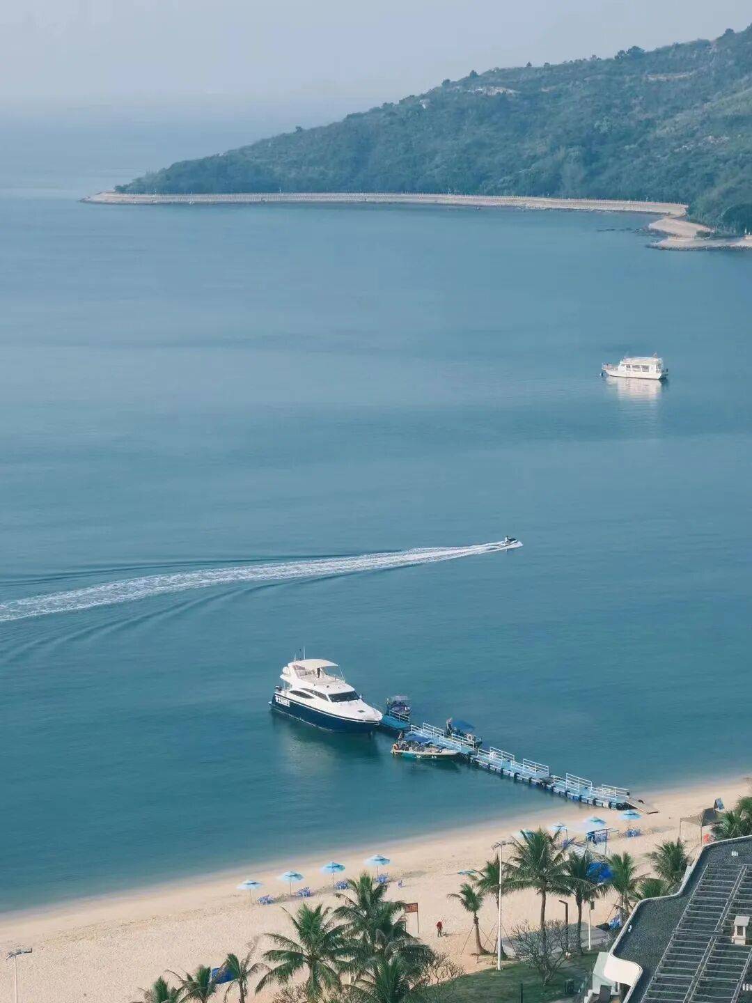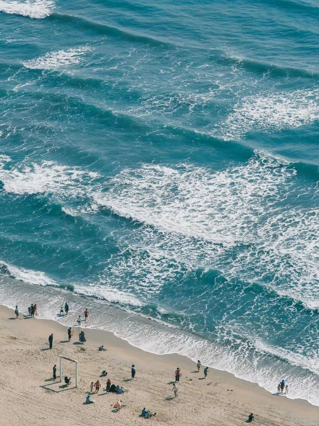 而双月湾的看海好去处里,也少不了观景台,你能俯瞰一整片四十里的长滩,一半是林立高楼,一半是湛蓝大海,洁白浪花一簇簇涌来,海与城就静静相拥。