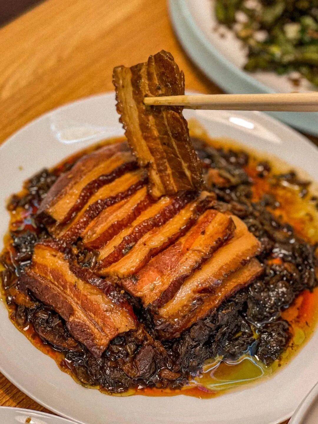以自家梅菜与肥瘦相宜的五花肉烹煮出的梅菜扣肉,则更是强强联手,吃起来咸中带甜,肉质软烂,肥而不腻,入口即化,既有着梅菜的清香,又带着肉的酥软。
