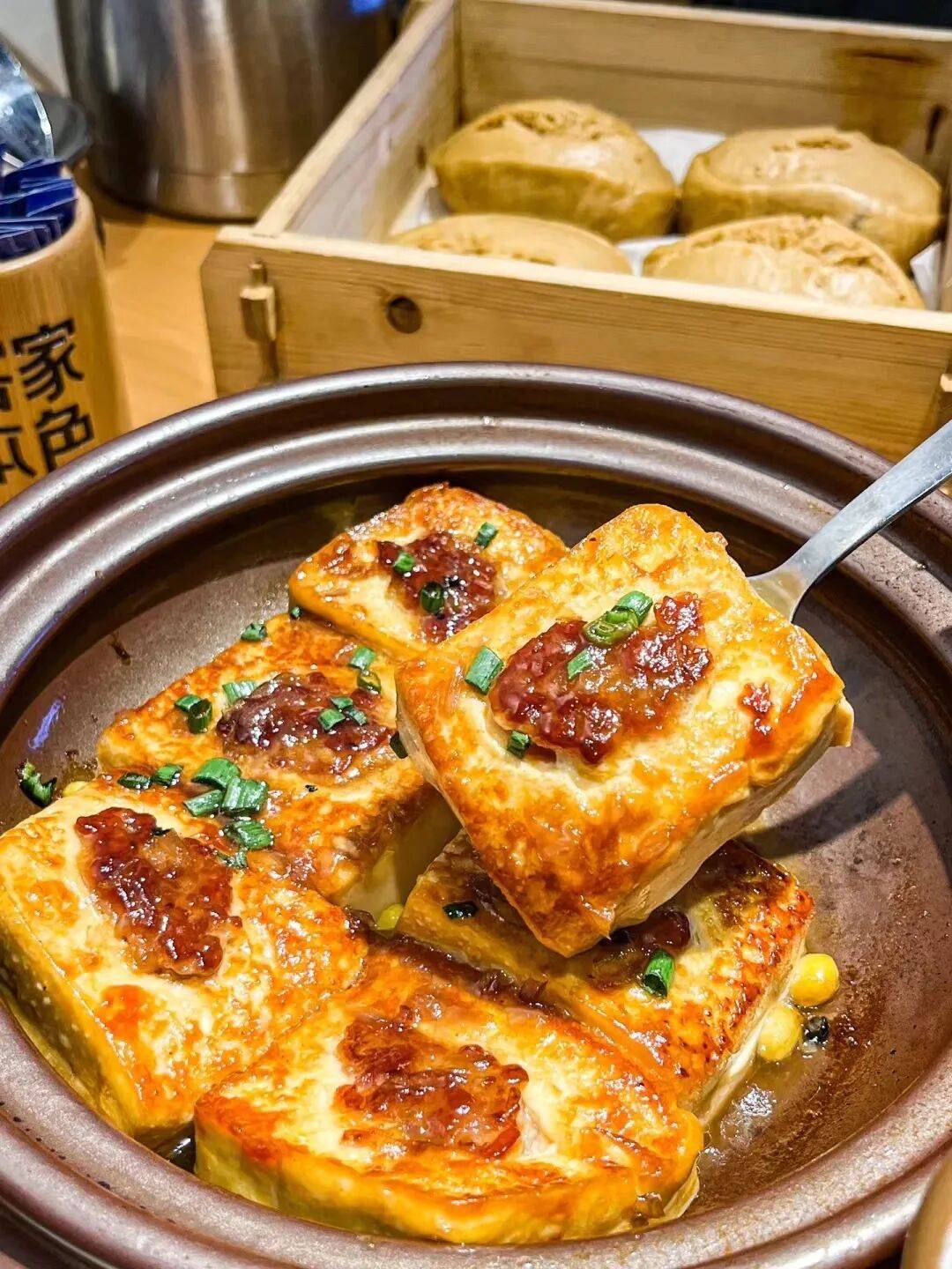 吃客家菜,当然要尝尝“一切皆可酿”的酿菜,尤其是一道酿豆腐,焦脆嫩滑的豆腐包裹着咸鲜多汁的肉馅,一口下去就爆汁,好吃得停不下来。