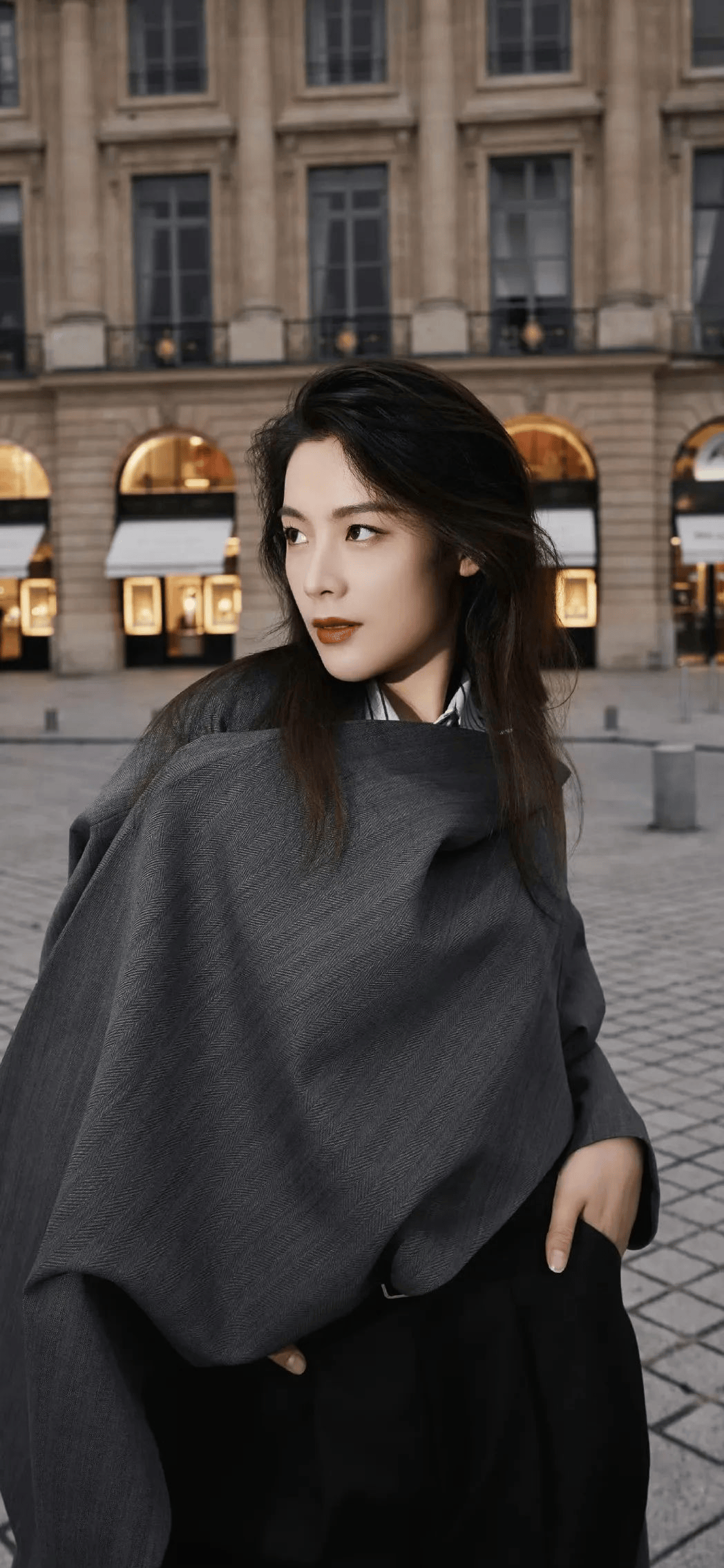 写真里的陈乔恩,风格百变。时而身着黑色皮衣,搭配利落的短发,眼神冷峻,气场全开,仿佛是从漫画里走出的酷飒女主;时而又换上飘逸的长裙,长发披肩,眉眼间尽是温柔,宛如从古风画卷中款款走来的仙子。她或倚靠在复古的墙壁旁,或漫步在光影斑驳的小巷,每一个动作都自然又随性。