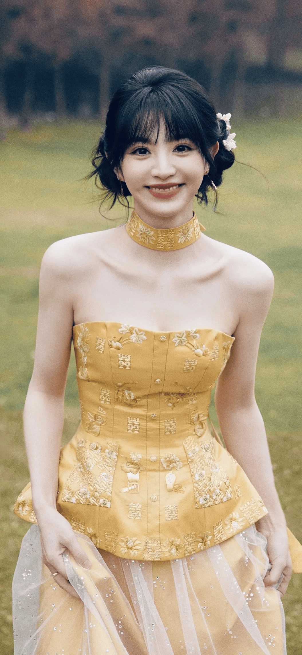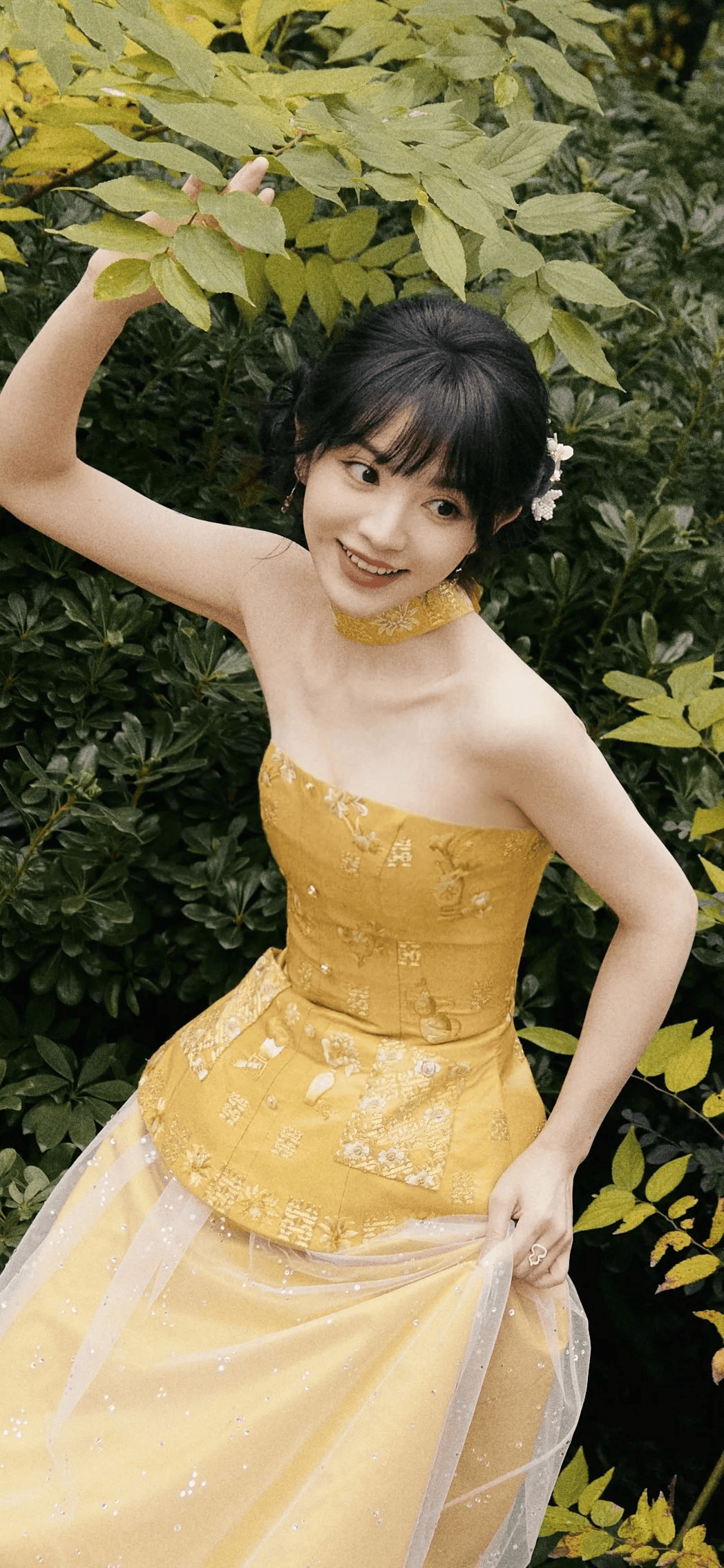 陈乔恩用一组精心打造的写真为粉丝送上节日惊喜。不同于往年的清新甜妹风格,这次她大胆挑战“玉兔塑”主题,身着鹅黄吊带襦裙惊艳亮相。