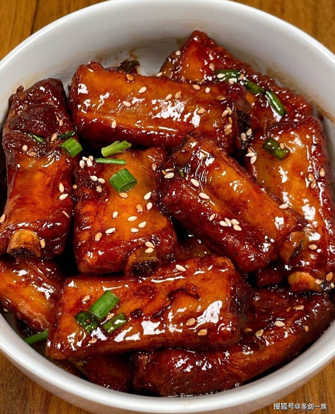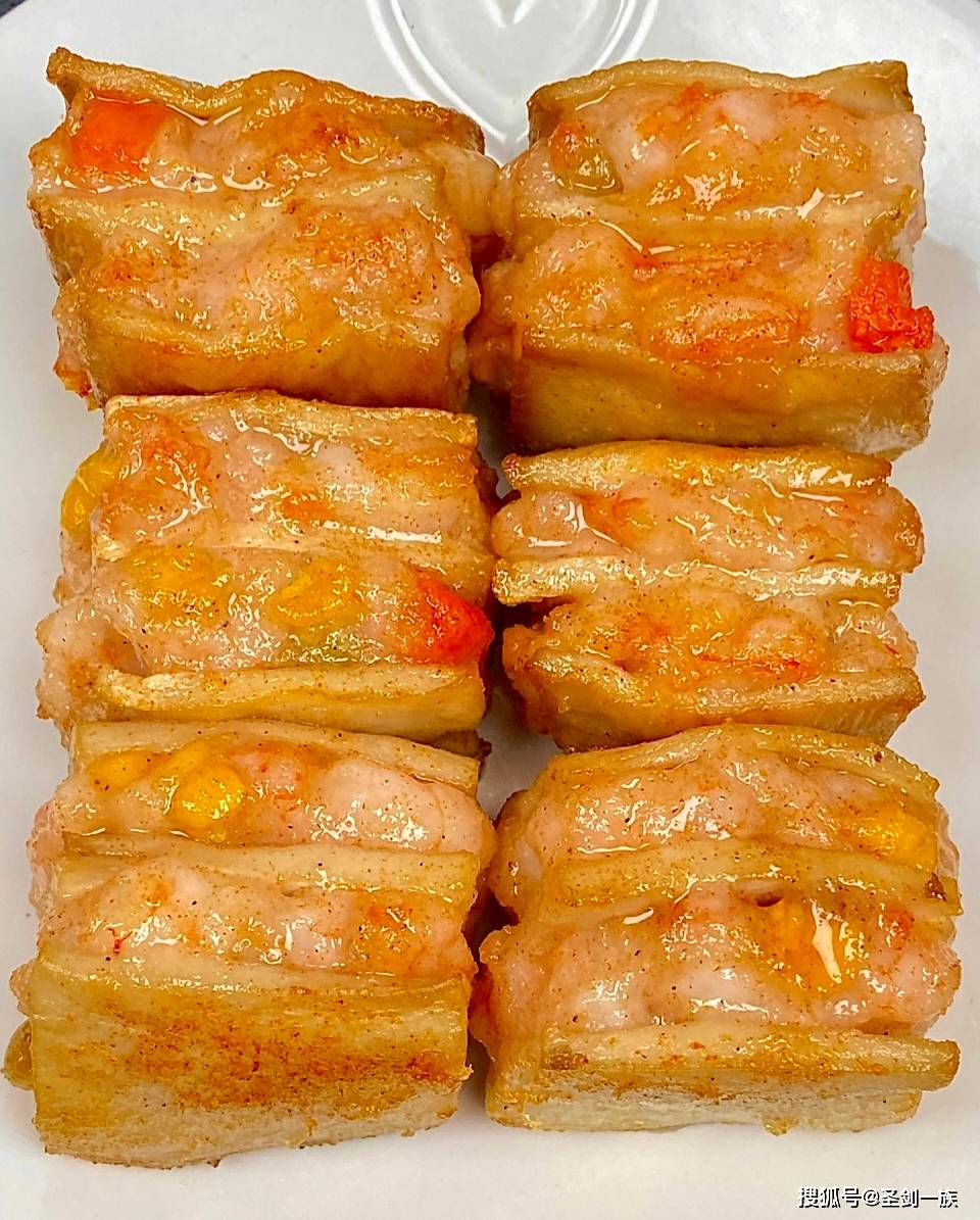 食材:杏鲍菇2根切夹刀片,虾仁200克剁泥,胡萝卜末2勺,淀粉适量,照烧汁3勺。 制作过程: 1. 虾泥混合胡萝卜末,加半勺盐搅打上劲 2. 杏鲍菇切口不切断,在内侧拍薄薄一层淀粉 3. 将虾滑酿入杏鲍菇夹层,轻轻压实边缘 4. 平底锅刷油,小火慢煎至两面金黄 5. 淋入照烧汁,加盖焖3分钟让酱汁渗透。拍淀粉这步不能省,它是让虾滑和杏鲍菇紧密相连的关键! 三、红烧排骨