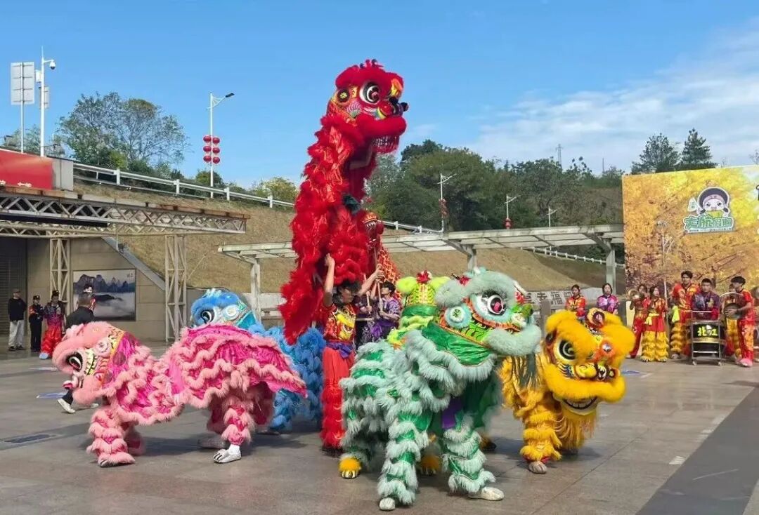 现场锣鼓铿锵,祥瑞的舞龙舞狮队伍欢腾起舞,以这一传统而喜庆的方式为游客们送上诚挚的祝福;身着盛装的瑶族姑娘们跳起风情独具的迎宾舞蹈,以热情的笑容感染着每一位抵达的宾客。此外,游客们还领到了特色的韶关伴手礼,让这份秋日的温暖与惊喜,从抵达的第一刻起便伴随整个旅程。