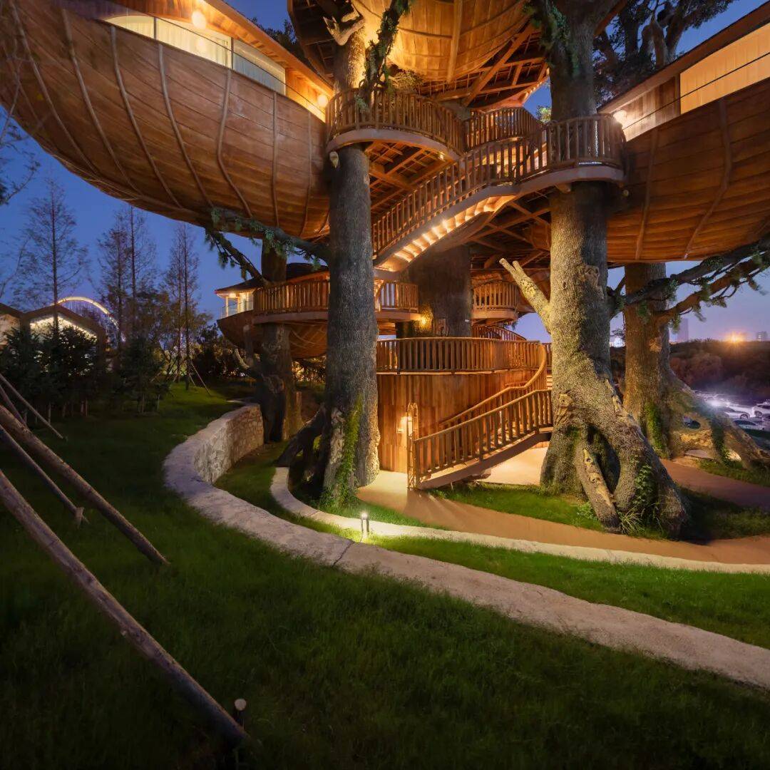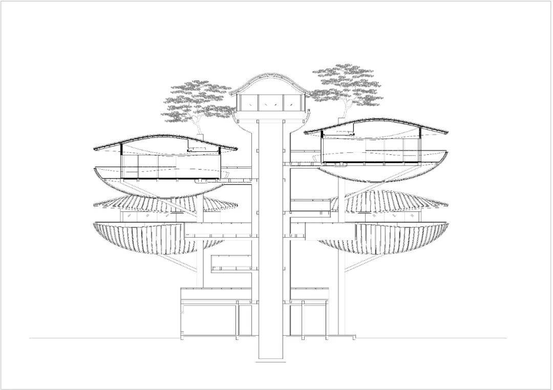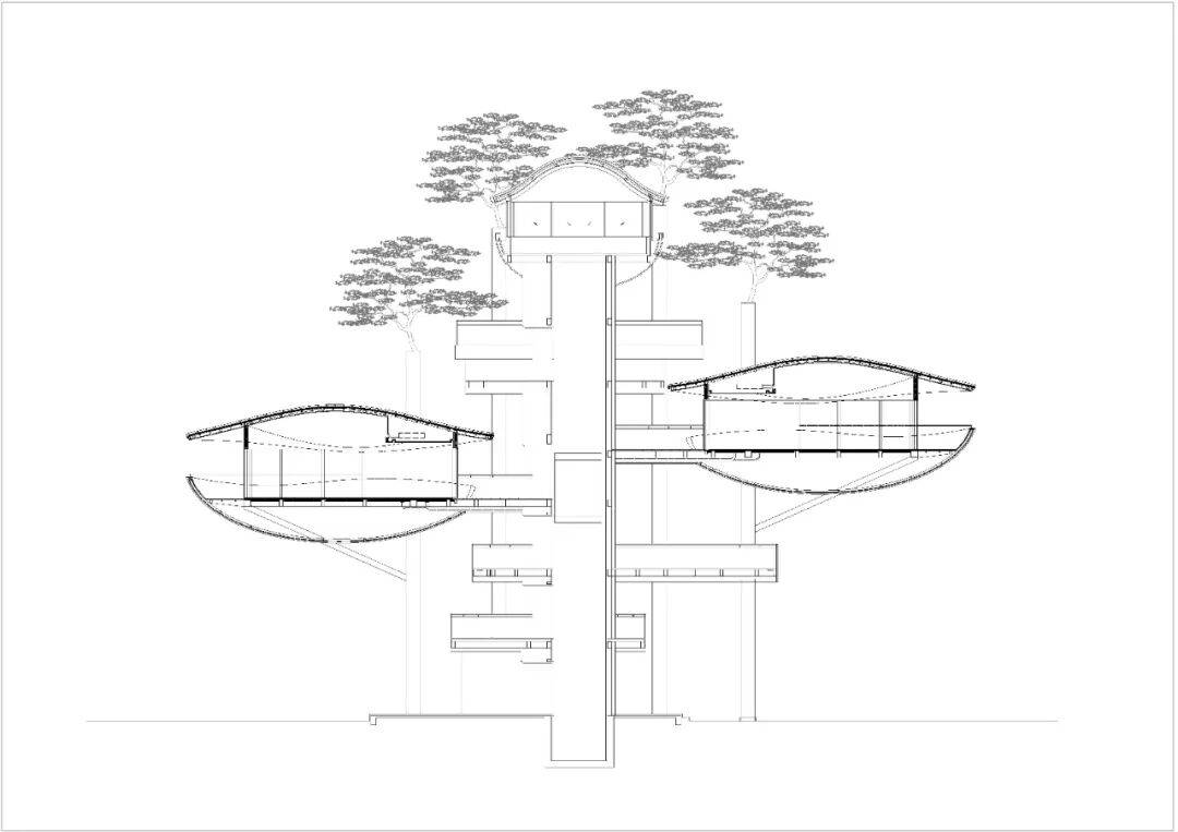 整体剖面图 项目信息 项目名称:林间之巢 项目类型:建筑、景观、度假酒店 项目地点:森泊乐园(日照、武汉) 建成状态:建成 设计时间:2021 建设时间:2025. 建筑面积(平方米):441.92㎡ 主创建筑师:丁鹏华 建筑:唐家佳、王文瑞、蒋宏 结构:缪建波、陈通 室内:Dean马 机电:姚一昉、陈勇、郭南星、何旭萌、孙翠、樊工 主题包装:淡水河谷艺术 业主:开元森泊度假乐园 摄影师:梁山、吴巍