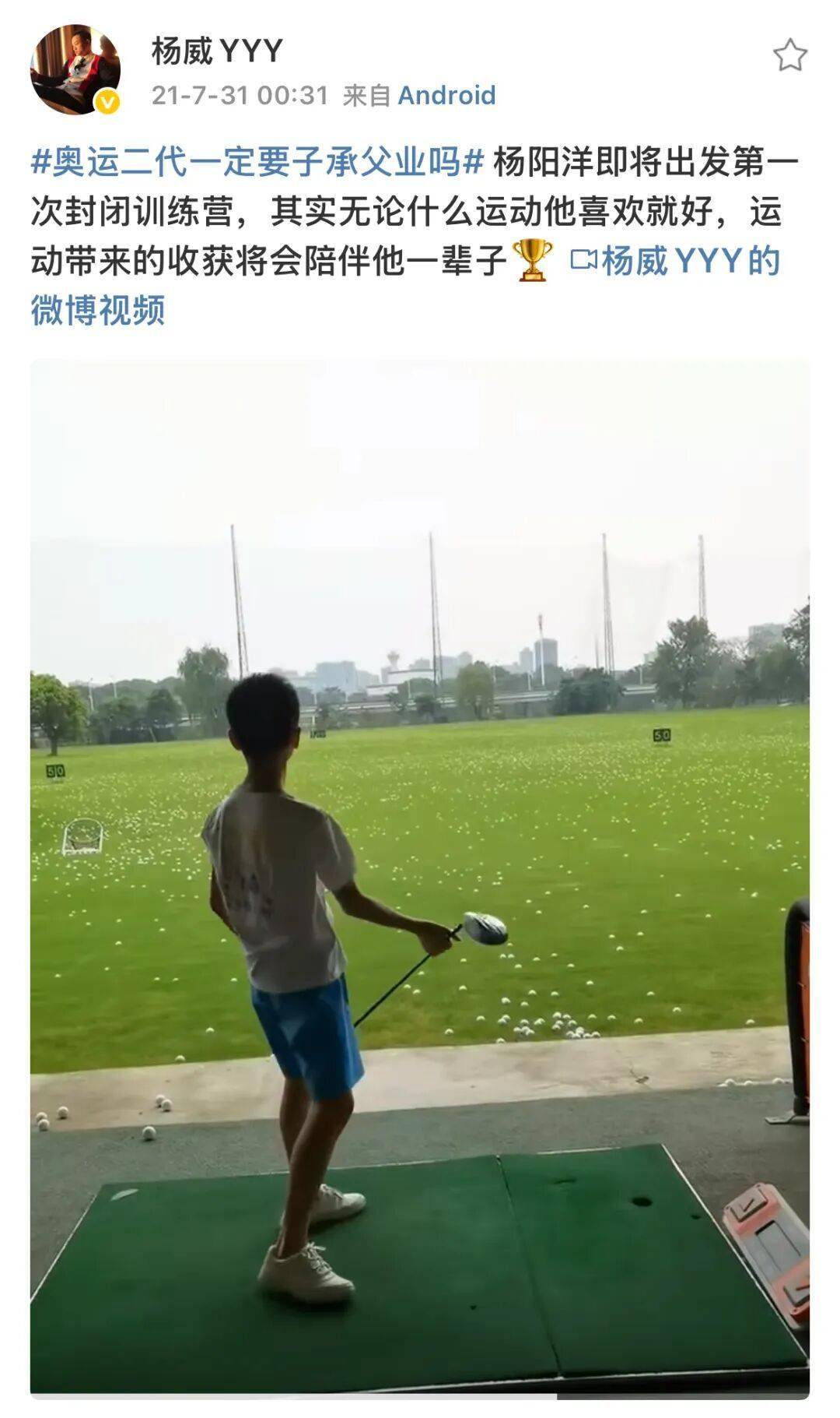 一练就是八年,23年的时候杨威表示13岁的杨阳洋开始做职业高尔夫运动员的准备,