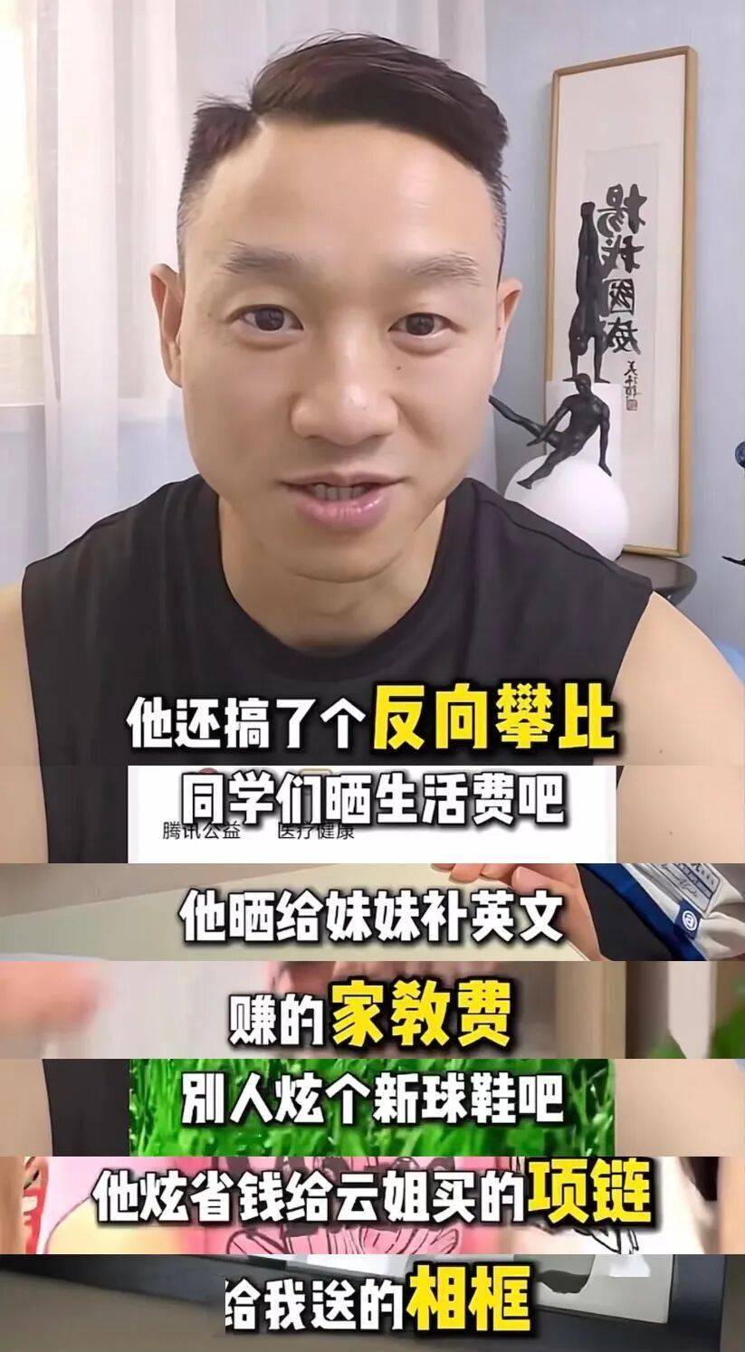 在朋友圈里搞了一个反向攀比,别的同学都在晒生活费、新球鞋,他在晒给妹妹们补习的家教费和给父母买的礼物。