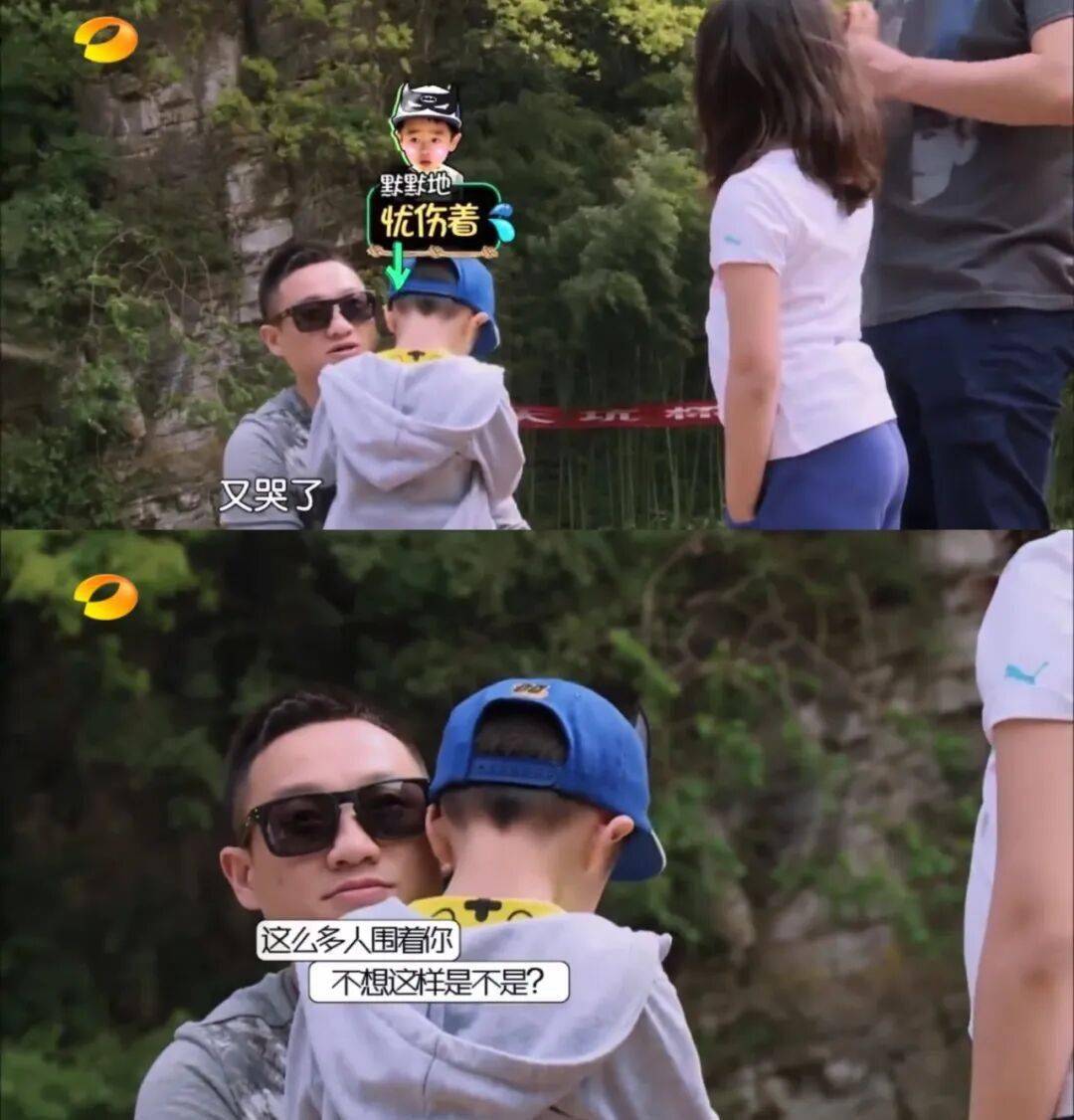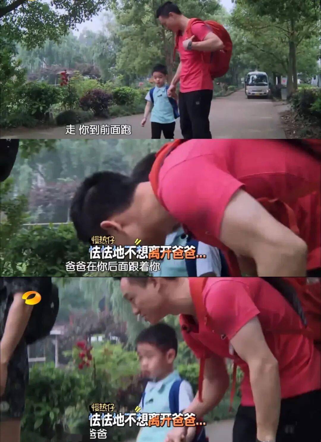 村长要小朋友们跑步前进到抟云塔领取任务卡,杨阳洋怯怯地不想跟爸爸分开👇
