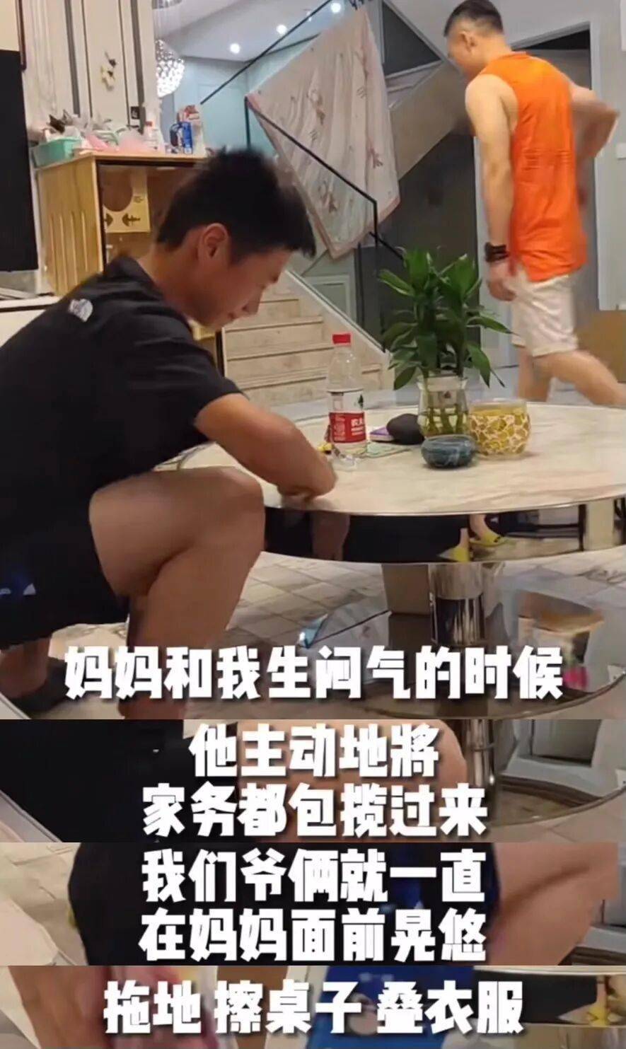 父母言传身教的影响,杨阳洋一如既往的懂事。 爸妈吵架的时候主动包揽家务👇