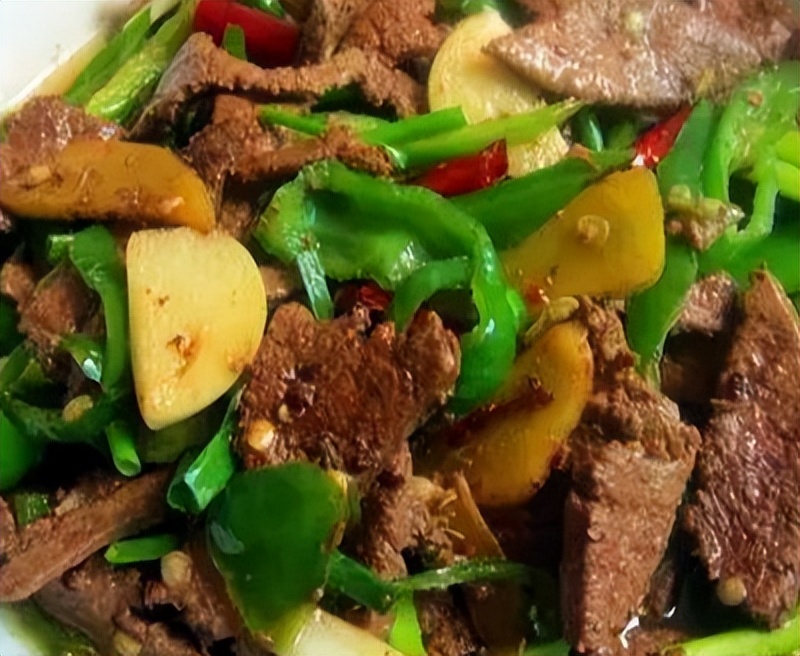 主料牛肉:250;葱:适量 辅料辣椒:适量;料酒:适量;小米椒:少量 具体步骤葱洗干净切成段,辣椒切成丝,牛肉切丝 牛肉丝加入调味料腌制几分钟 起油锅,倒入辣椒丝,葱段爆香 将腌好的牛肉丝,拌炒熟即可。 青椒炒猪肝