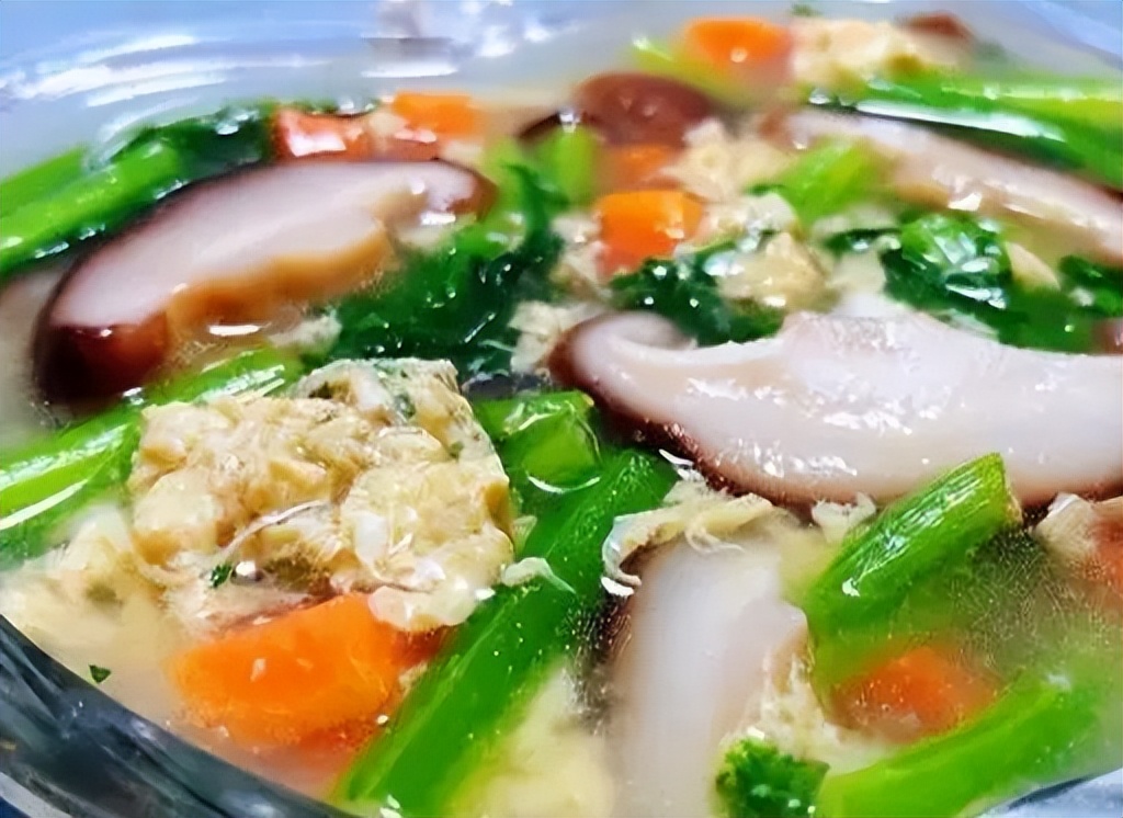 配料:香菇,菠菜,葱,胡萝卜,鸡蛋,盐,鸡肉粉 步骤:1.洗净香菇,切成薄片。用沸水煮沸或放在锅中煮沸。将胡萝卜洗净,切成小块。洗净菠菜,放在一旁。 2.烧锅中的油。油热后,炸洋葱片,加入胡萝卜并翻炒一会儿,然后加入蘑菇并转移适量的盐 3.炒一会儿后,加适量的水或浓汤。煮沸后,加菠菜,倒入蛋液。 4.品尝一下,根据自己的口味重新调味,然后撒一些鸡粉使其出锅 绿豆百合汤