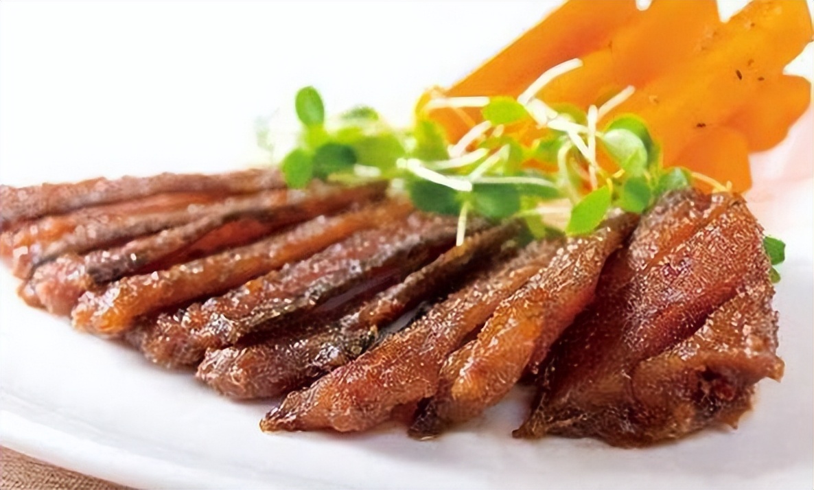 食材:猪小排500克 盐适量 油1勺 辣椒粉2大勺 青椒4个 孜然适量 做法:1.排骨切成段,油锅烧热,把排骨倒进去 2.翻炒至微微变色,盖上锅盖,焖煮片刻 3.倒入从排骨上切下的肉片一起翻炒 4.炒至肉变色,放入青椒和盐 5.翻炒至青椒变软,加入葱段 6.撒入孜然粉即可起锅 肉酱炒百叶丝
