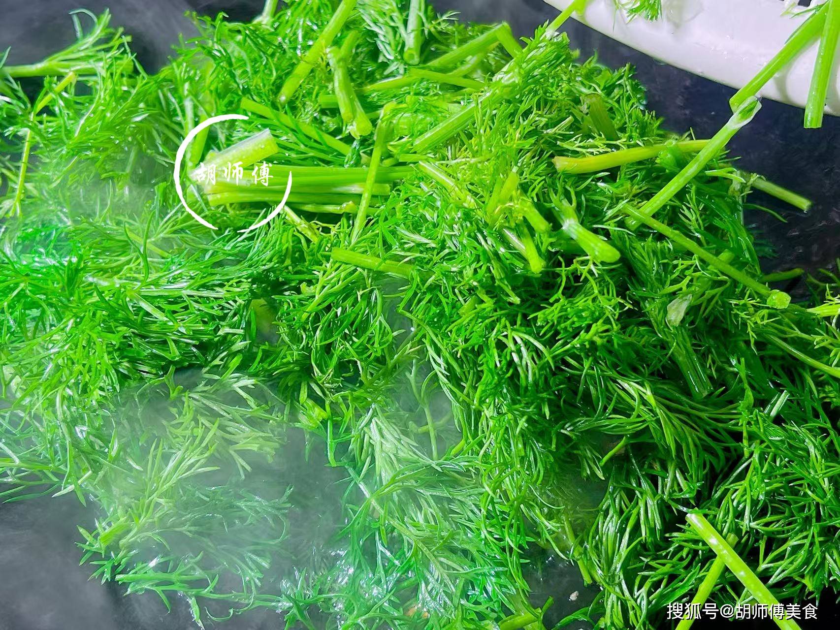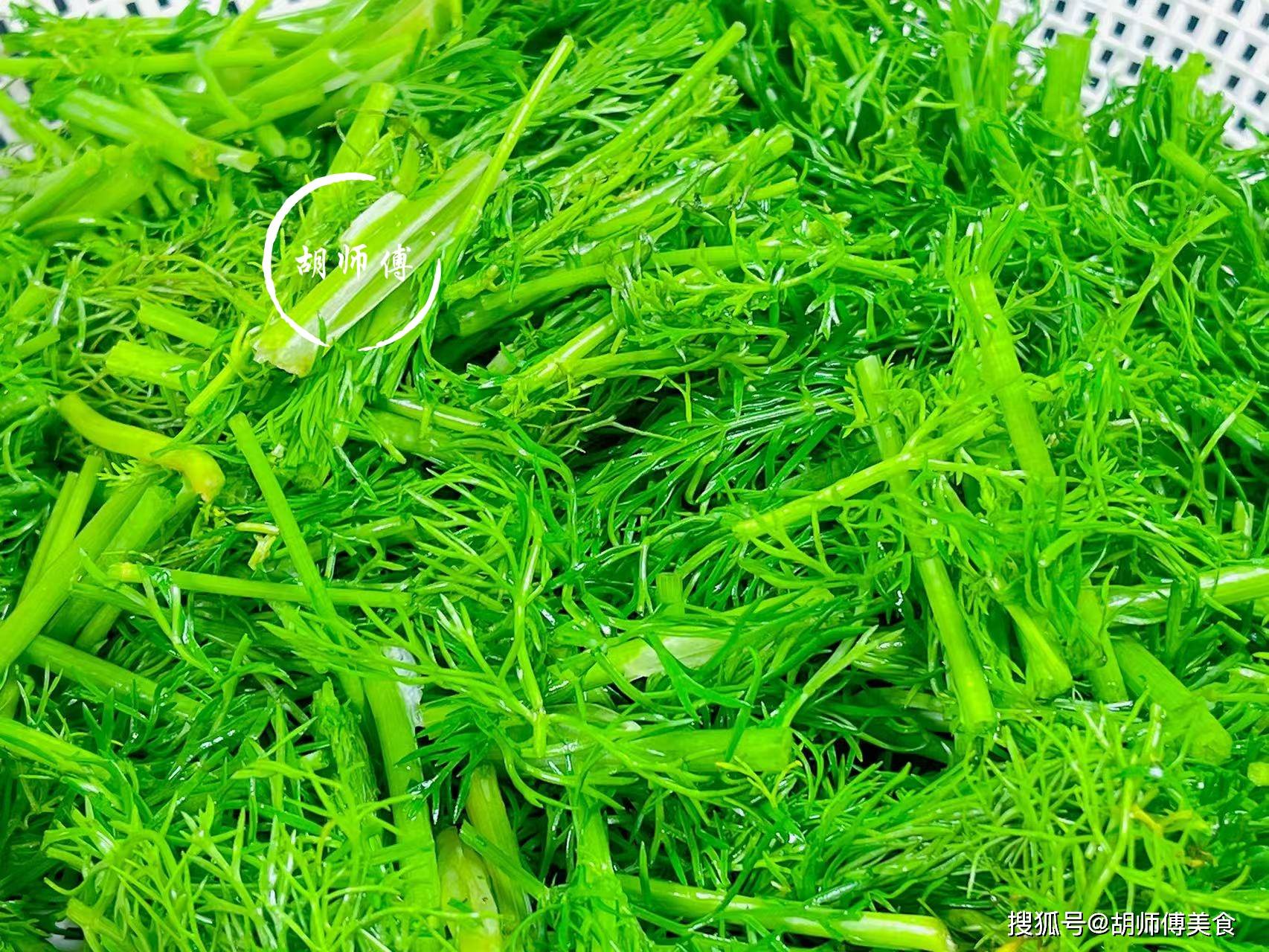 - 茴香菜洗净切段,浸泡5分钟后沥干。
