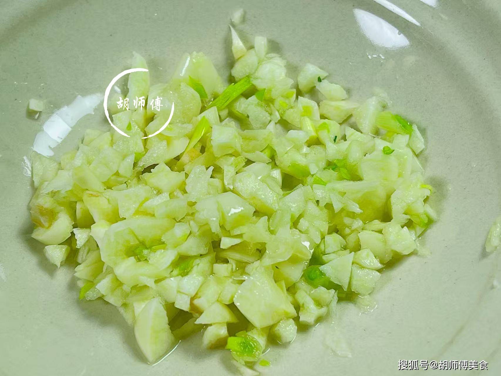 第三步:将锅烧热后,把一勺猪油放入锅中,大火将猪油烧到有少许烟冒出来,就可以把切好的蒜末放入锅中,大火将蒜末炸5秒,这样可以激发出茴香菜表面的香味。