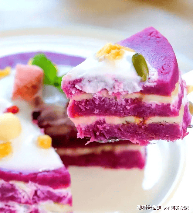 具体做法:做饼底:将饼底材料混合压成泥,在模具底部压实。做紫薯层:紫薯压成泥,与酸奶、枫糖浆混合均匀。吉利丁片用冰水泡软后,加入温牛奶融化,再倒入紫薯糊中拌匀。组合冷藏:将紫薯糊倒入模具,轻震出气泡,冷藏4小时以上或过夜定型。装饰:脱模后可用少许酸奶、水果或薄荷叶装饰。