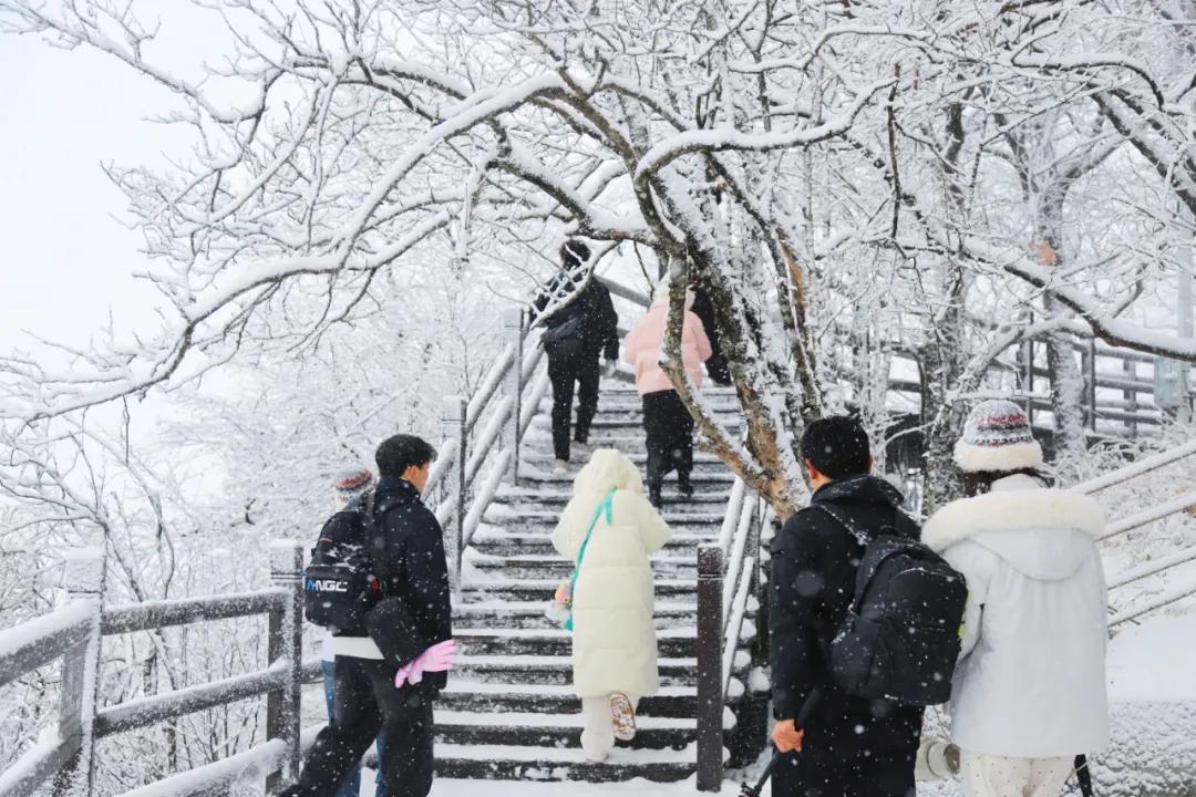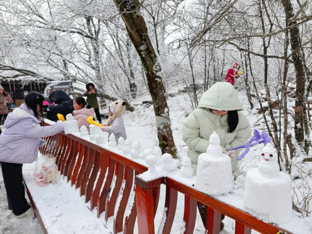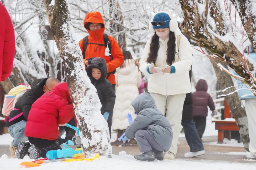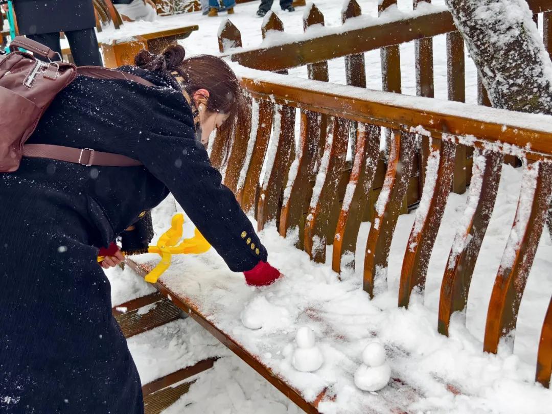 许多来自南方的游客们,第一次见到大雪纷飞,开心地在雪地里玩雪、堆雪人、打雪杖;大家纷纷举起手机、相机定格这银装素裹的冰晶世界,不禁感叹“这趟冰雪之旅太值了”!
