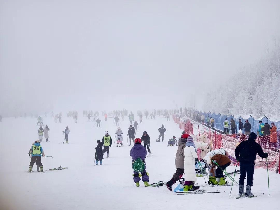 龙头山滑雪场人气爆棚,滑雪爱好者们脚踩雪板,在雪道上风驰电掣,感受速度与激情的碰撞。