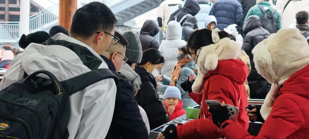 “雪山好礼”龙头山文创派送活动诚意满满,游客们积极踊跃参与活动,把龙头山精美文创礼品带回家。