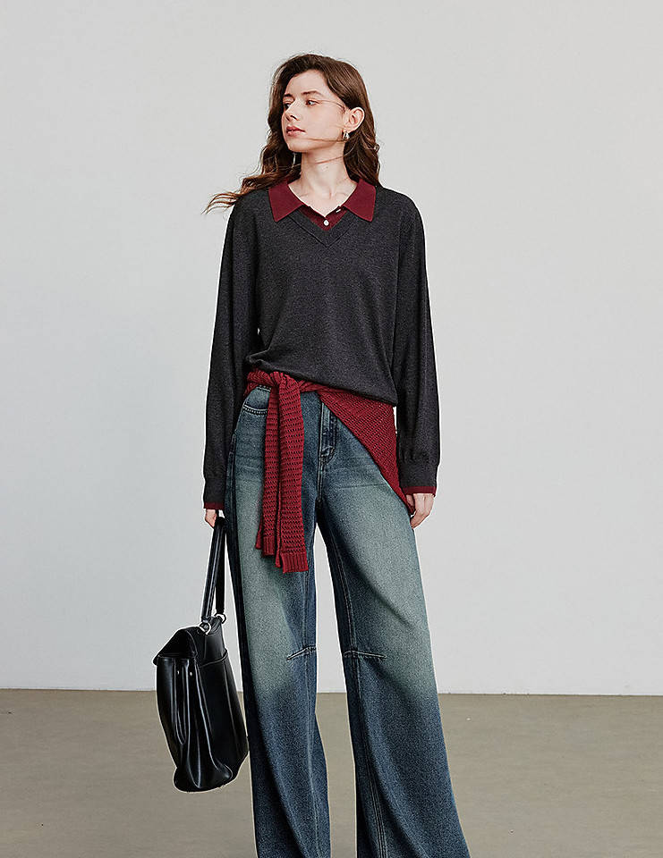 选择红灰拼接的单品,自带设计感,不用费心搭配就能赢很大。