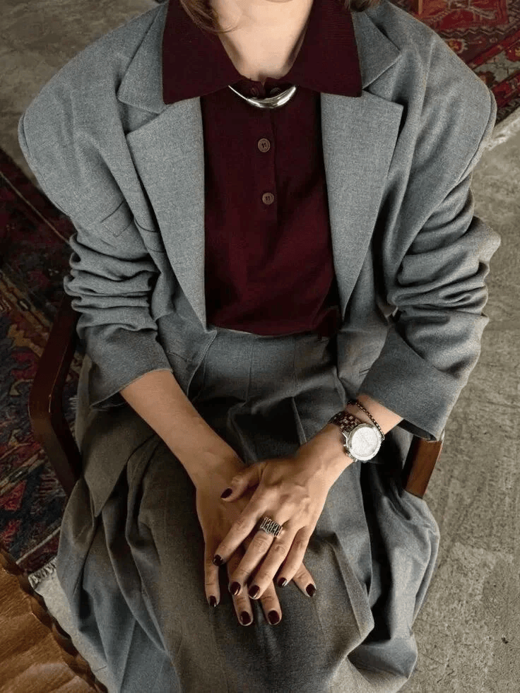 而气质灰最妙的地方,恰恰在于它的超强可塑性:与温柔的微醺红相遇,能碰撞出冷暖相宜的惊艳;与任何亮色组合,又能稳稳托住基调,让整体造型高级又有格调。