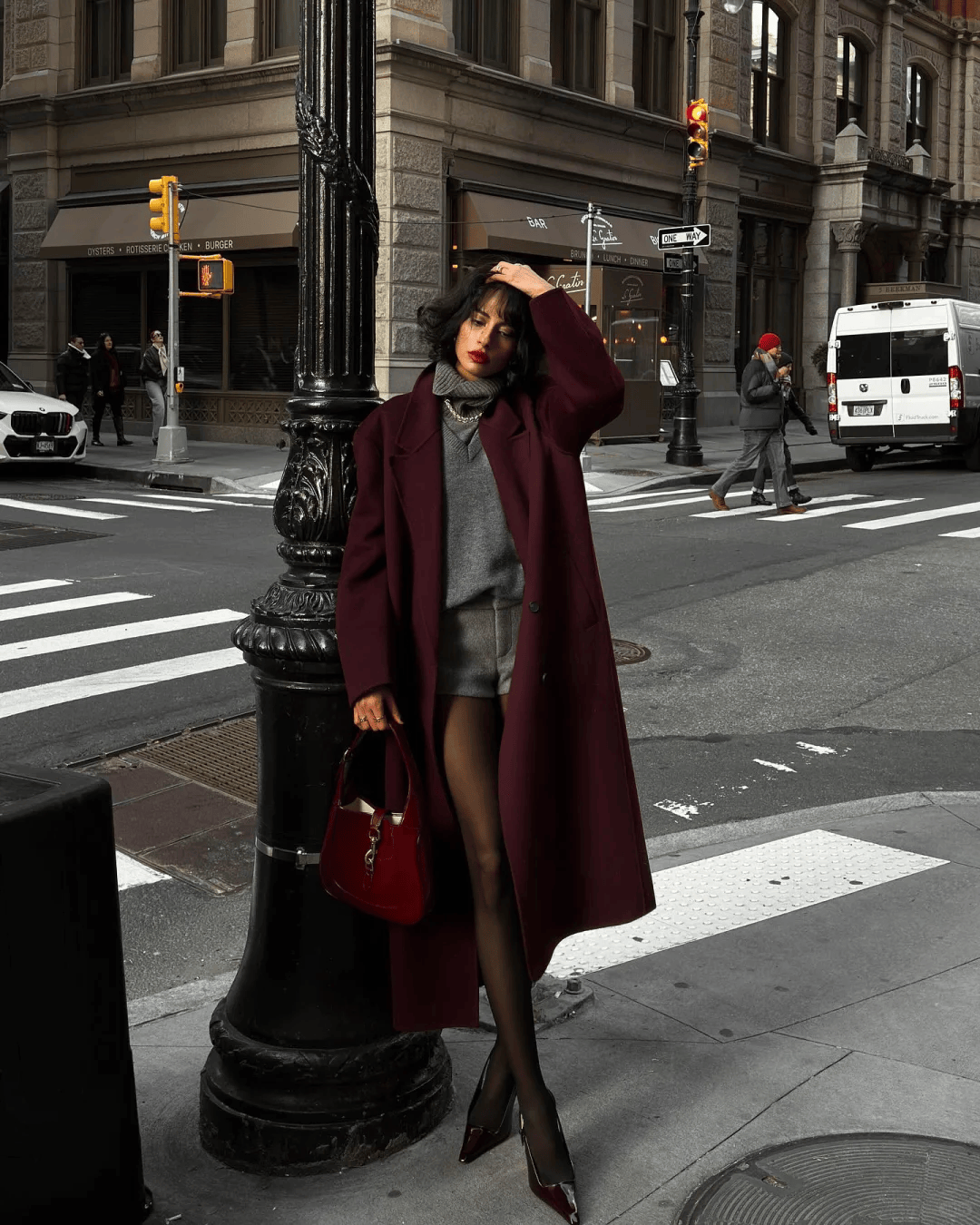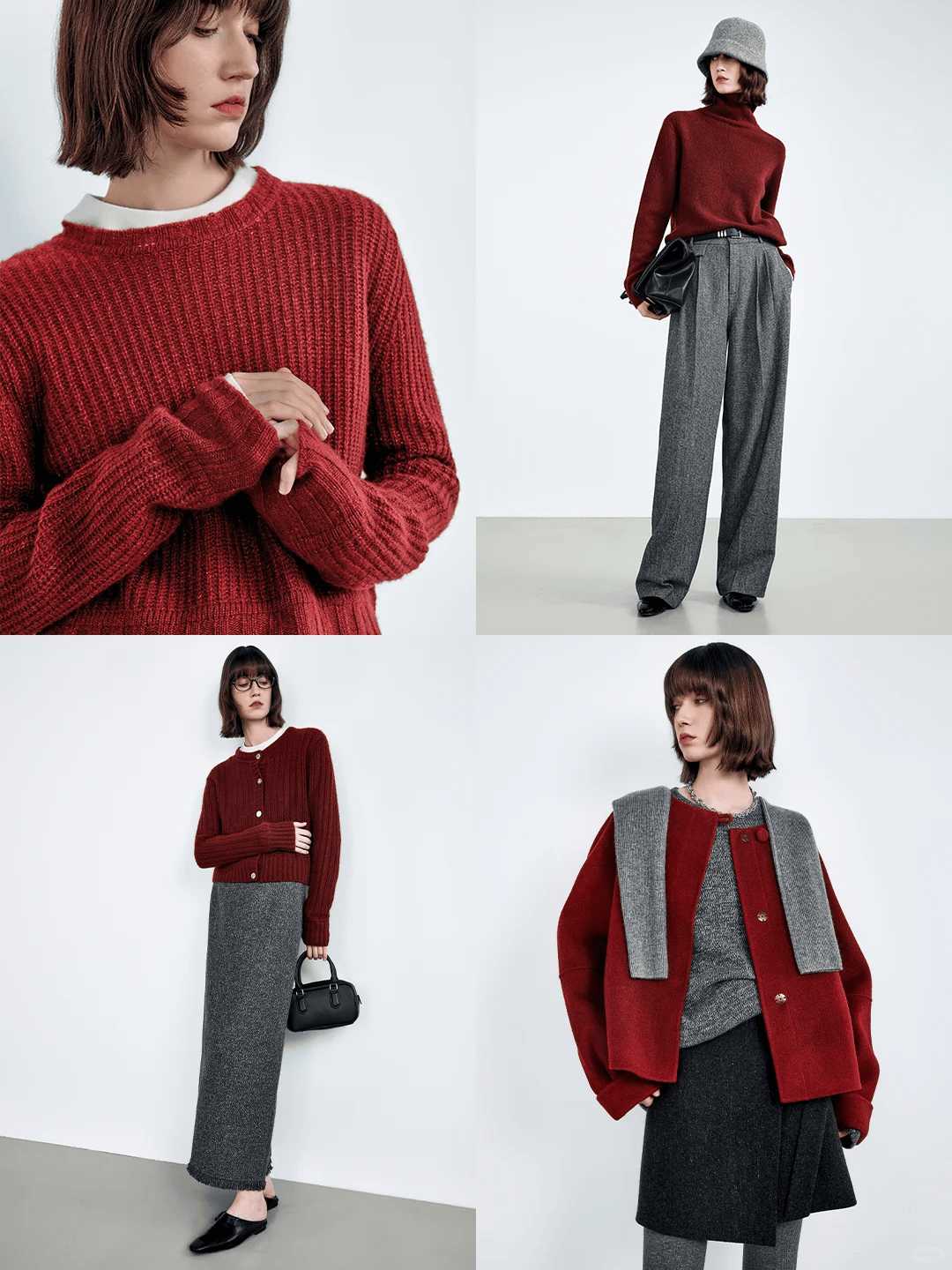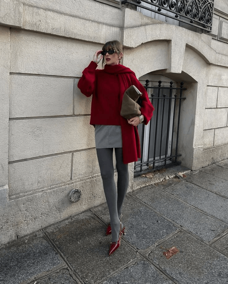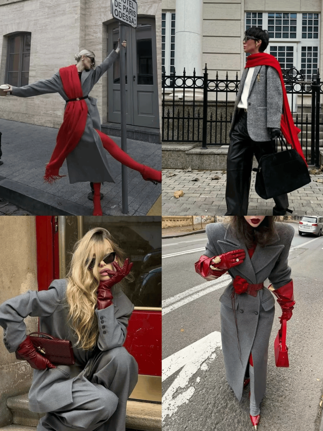 红色的热烈打破冬日沉闷,灰色的沉稳中和红色的张扬,一明一暗,互补又平衡,不管是通勤、约会还是节日聚会,都能穿出高级又有态度的质感。
