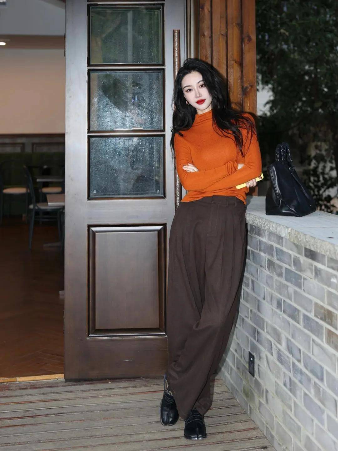 选择一件棕色的外套或毛衣作为主色调,再搭配一条亮红色的围巾、包包或者鞋子,以此来增添整体的亮点,让穿搭更具个性和时尚感。