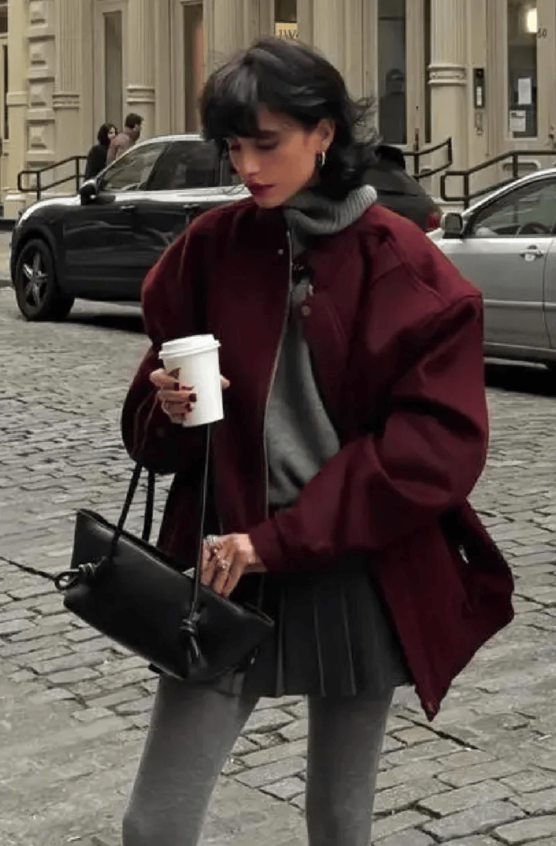 如果想尝试更有设计感的造型,可以让红灰单品直接衔接,通过材质差异避免杂乱,适合日常出街、拍照打卡。