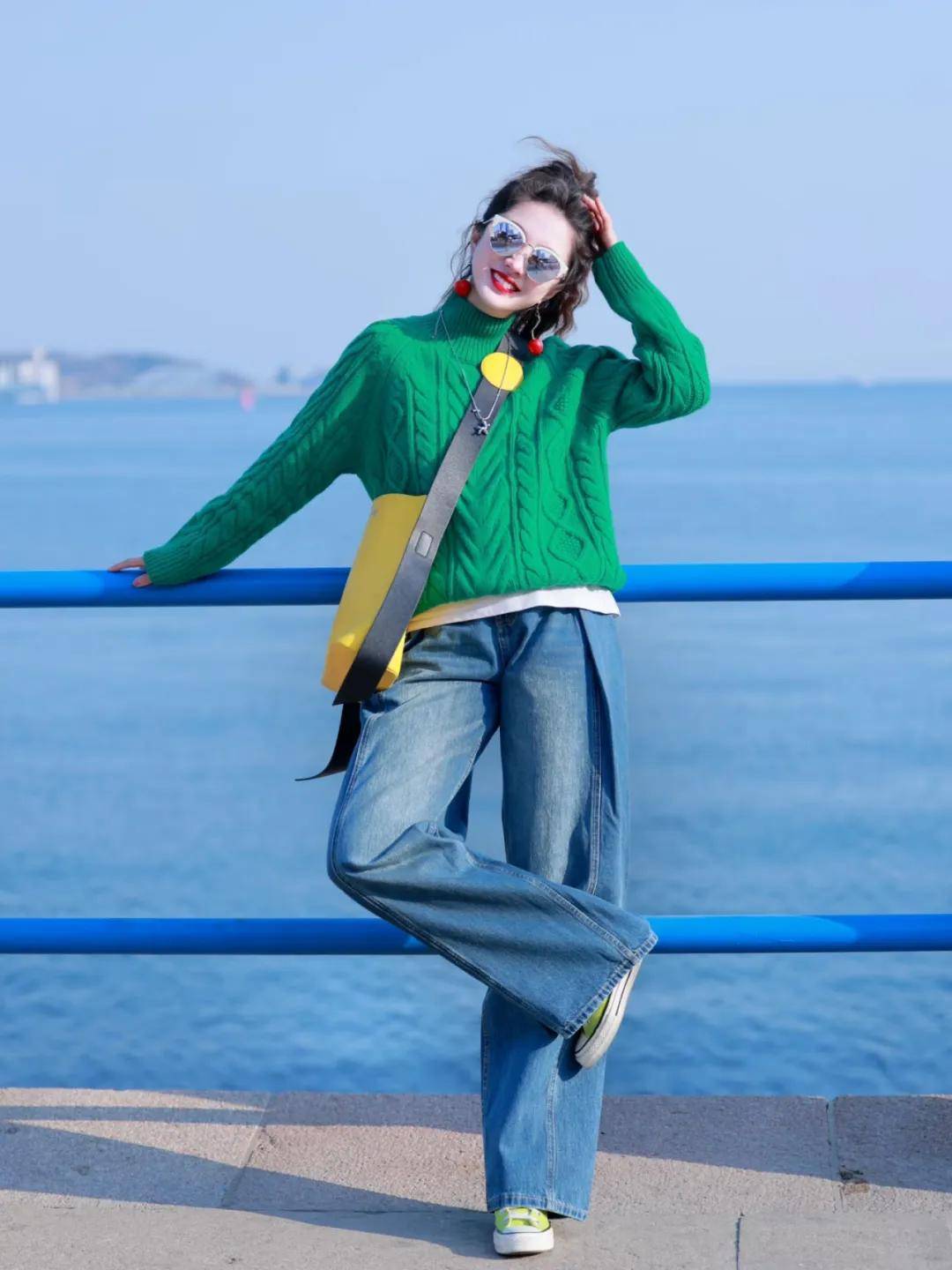 选择一件绿色的高领毛衣或者外套搭配一条牛仔蓝裤子,这样的搭配不仅保暖舒适,还能展现出低调而不失品味的时尚风格。