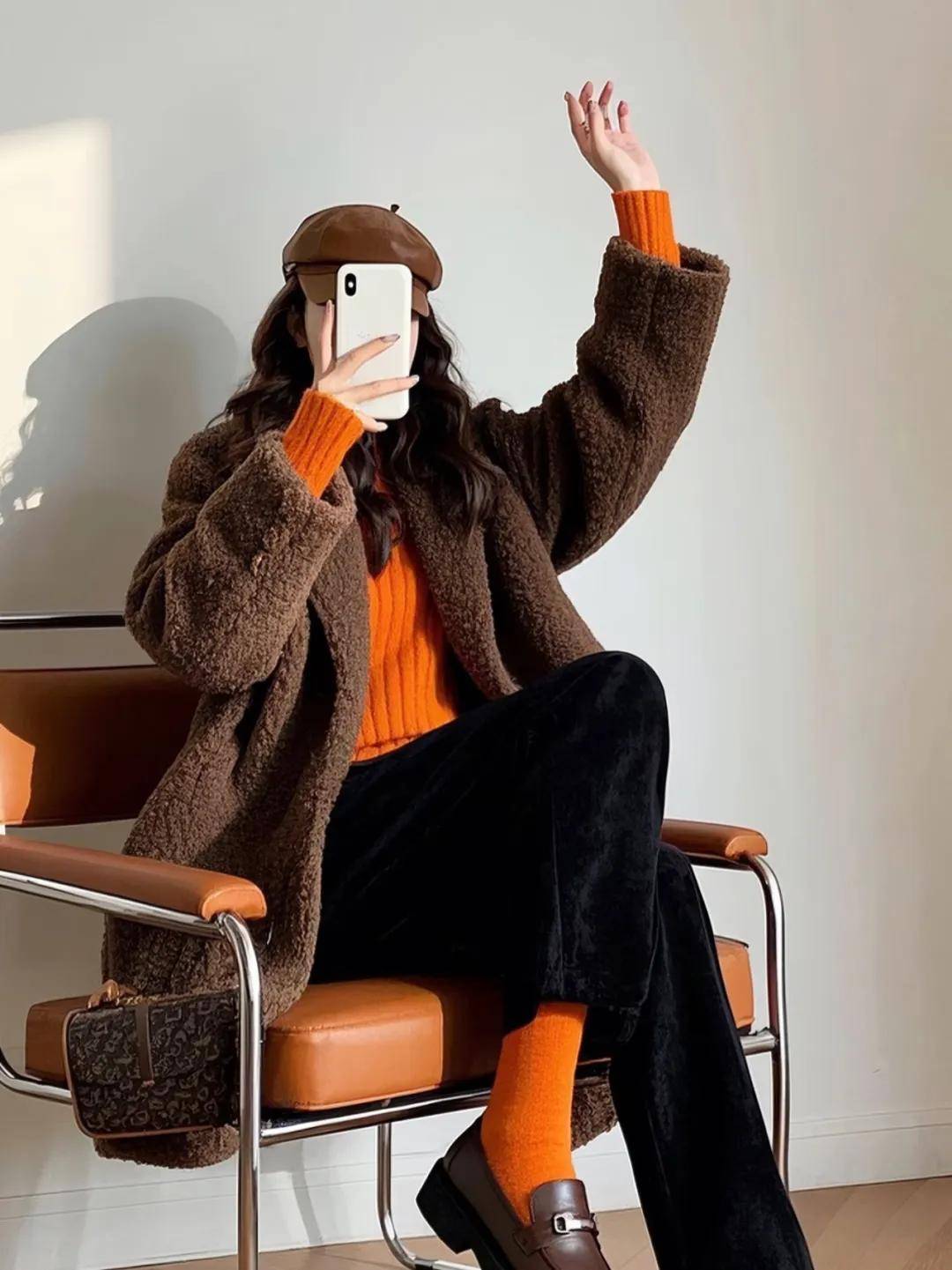 同色系的深浅搭配,如同咖啡与焦糖的融合,温暖又富有层次感,这种配色充满了浓郁的复古气息,无论是大衣还是包包,都能展现出优雅的复古韵味。